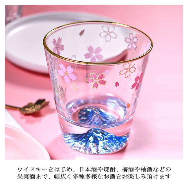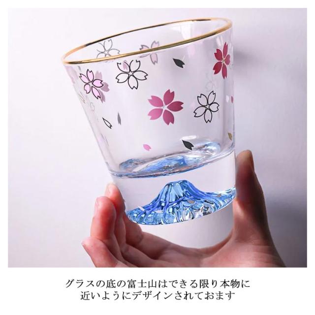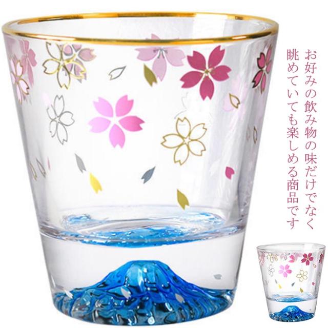 | ひらひらと舞う桜の花びらお楽しみ頂けるロックグラス。 グラスの底の富士山はできる限り本物に近いようにデザインされておます。 グラスには重量感があり、どなたにも馴染む持ち心地となっております。 お好みの飲み物の味だけでなく、眺めていても楽しめる商品です。 ウイスキーをはじめ、日本酒や焼酎、梅酒や柚酒などの果実酒まで、幅広く多種多様なお酒をお楽しみ頂けます。 | |