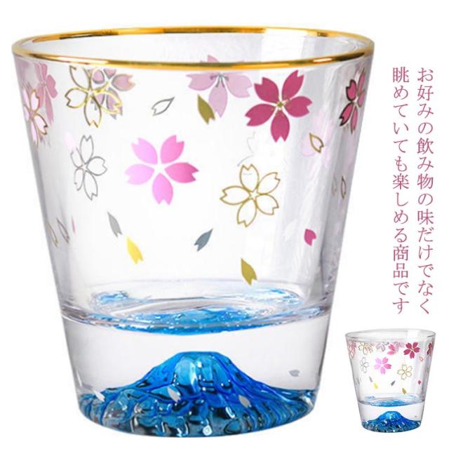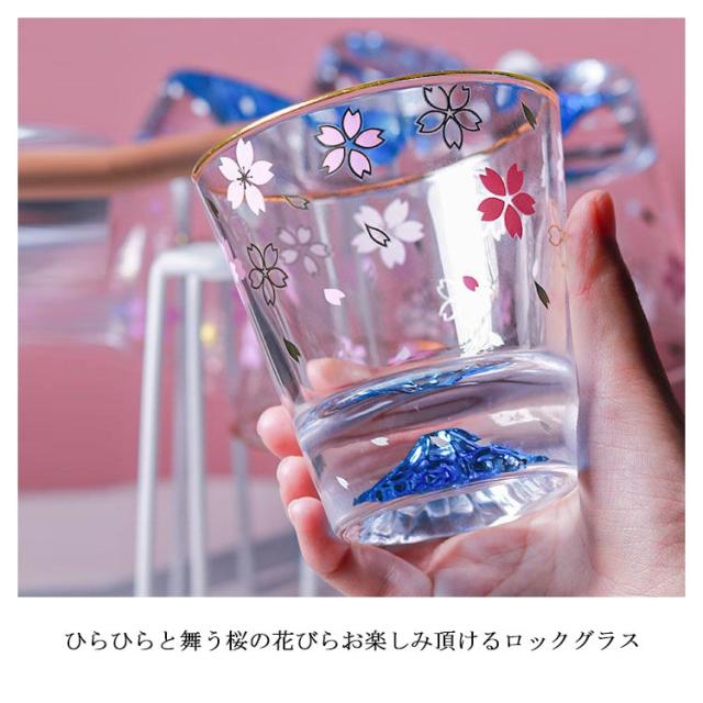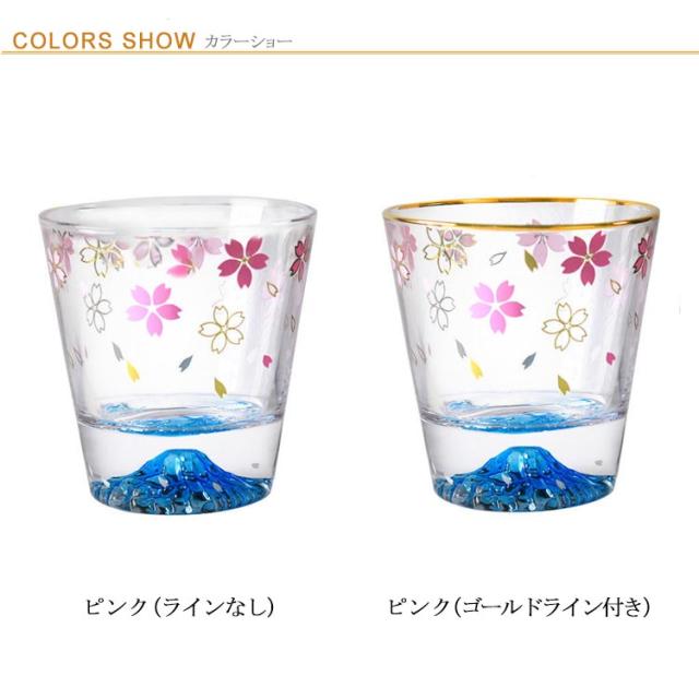 桜富士 お酒 グラス 富士山 ふじさん 桜 コップ クリア 290ml 透明 さくら柄 ロックグラス ウイスキー オールドグラス ショートドリンク ピンク ソフトドリンク オンザロック 和風 ゴールドライン かわいい おしゃれ