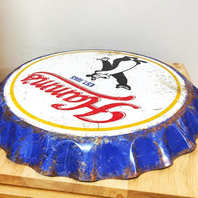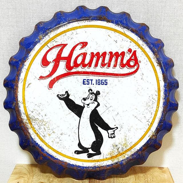 アメリカのビール醸造会社、ハムズビールのボトルキャップ型のレトロでおしゃれなブリキ看板です!