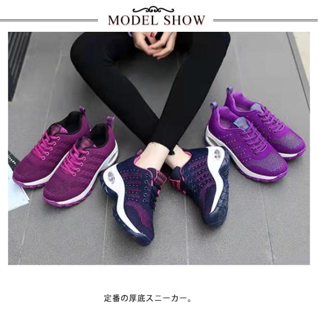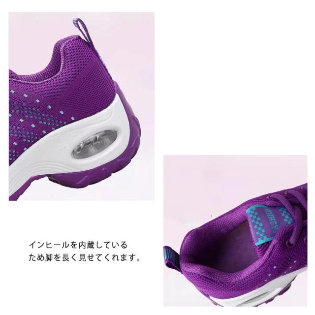| 定番の厚底スニーカー。 優れたメッシュ素材で通気性抜群。 指先でラクラク持てる超軽量設計。 長時間のウォーキングや立ち仕事での疲労を軽減します。 インヒールを内蔵しているため脚を長く見せてくれます。 | |