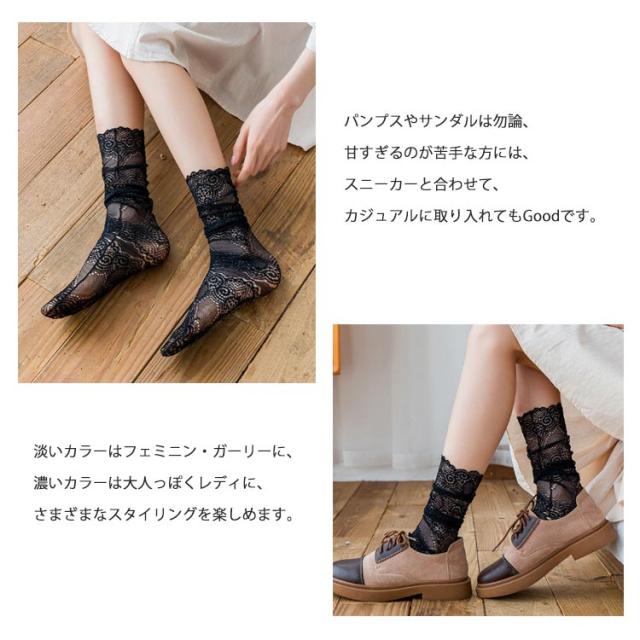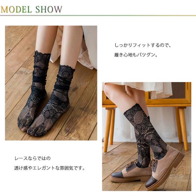 【送料無料】花柄レースソックス ハイソックス レッグウェア ソックス 靴下 パンプスソックス シースルーソックス レディース 総レース パンプス スニーカー 透け感 シースルー 伸縮性 ストレッチ 女性 婦人 ソックス くつした くつ下