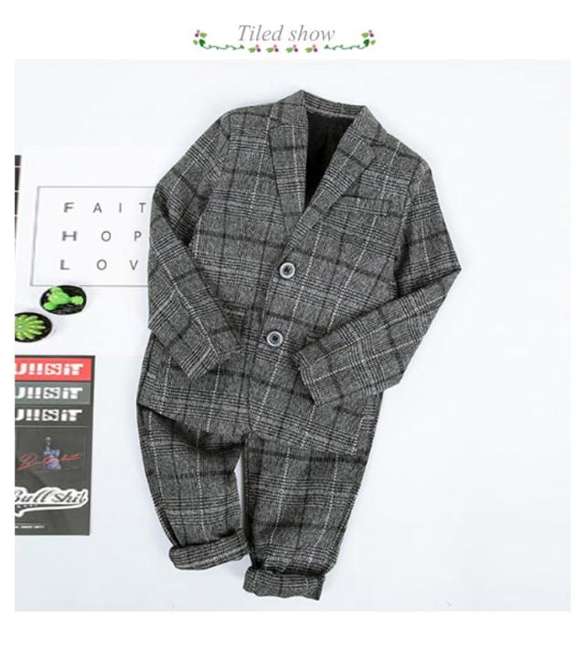 | スタイリッシュな男の子2点セットには、グレーのチェック柄コートとズボンが付属しています。 通気性があり、お手入れが簡単、 しわにくくてなります。 コートとパンツの両方に2つのポケットがあります。 結婚式、発表会、誕生日プレゼント、入学式、入園式など、日常着や特別な機会に適しています。 | |