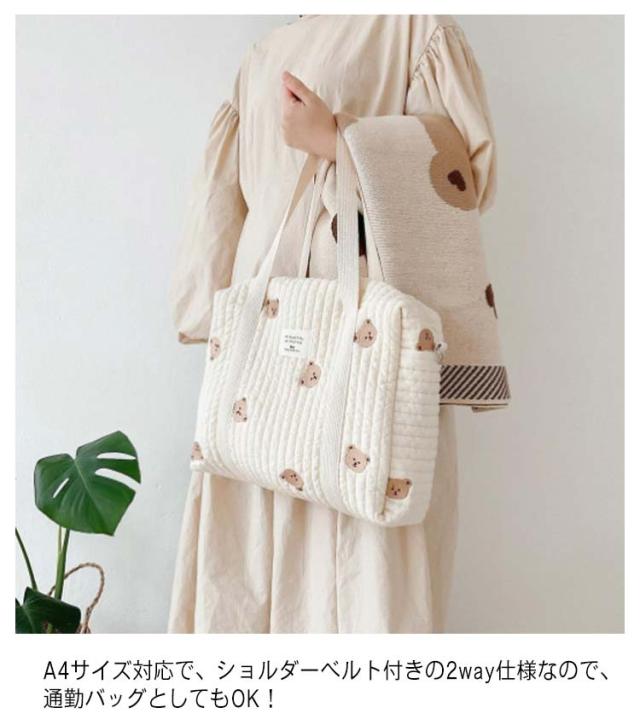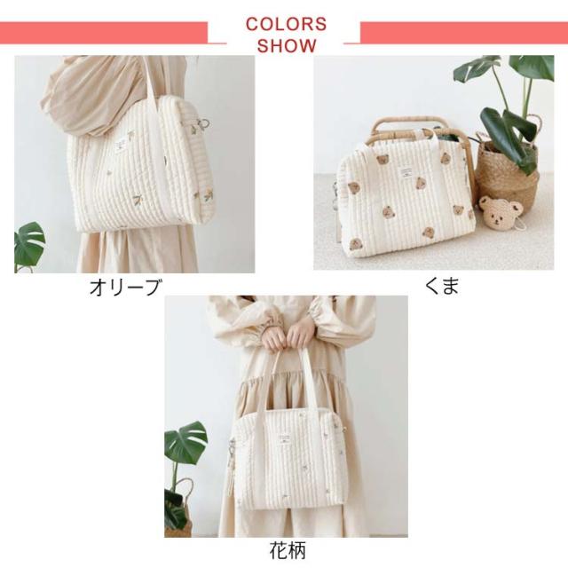 マザーズバッグ 雑貨 ショルダーバッグ 2way ママバッグ レディース 軽量 肩掛けバッグ 刺繍 トートバッグ くま 大きめ オリーブ 洗える ファスナー マチあり 花柄 プレゼント 通勤バッグ 北欧 多機能 母の日 ギフト 大容量