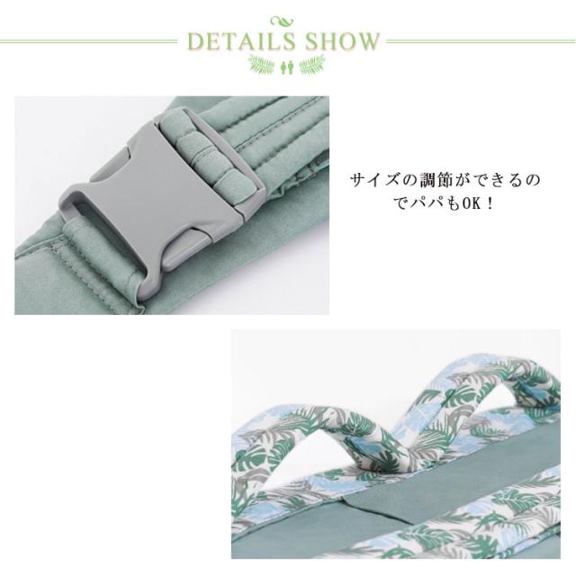 | 片手で赤ちゃんを支える腰抱きはお出かけ時に便利な抱き方のひとつです。 赤ちゃんが居心地のいいスリング!ママの鼓動が聞こえる空間は 赤ちゃんにとって1番安心できる居心地のいい場所。 包み込むスリングの中は、まるで大好きなママのおなかにいるよう。 赤ちゃんがとってもリラックスできる空間です。 新生児の頃に便利なのがスリングに入れたまま授乳ができるスタイル。 布が目隠しになるので、ケープを持たなくてすみます。 しっかり赤ちゃんを包んで抱いているから両手があくので、お出かけはもちろん家事や用事もできちゃいます! サイズの調節ができるのでパパもOK! 簡単にパパの身長に合わせて長さ調節してお使いいただけます。 パパにおすすめなのがヒップスター抱き。 ママにとっても赤ちゃんにとっても、かけがえのない抱っこの貴重な時間を大切に | |