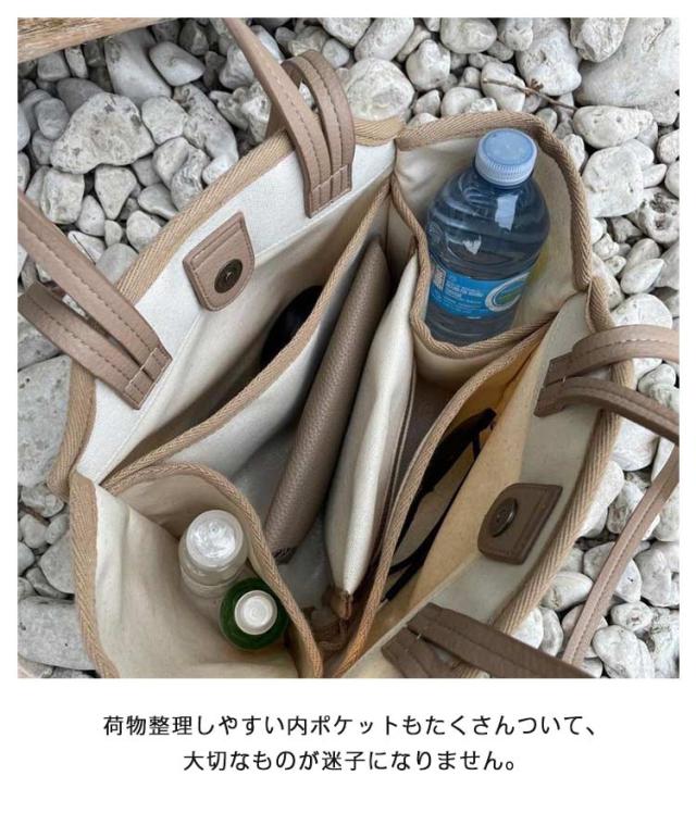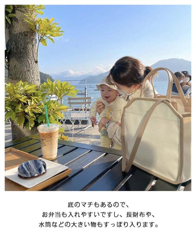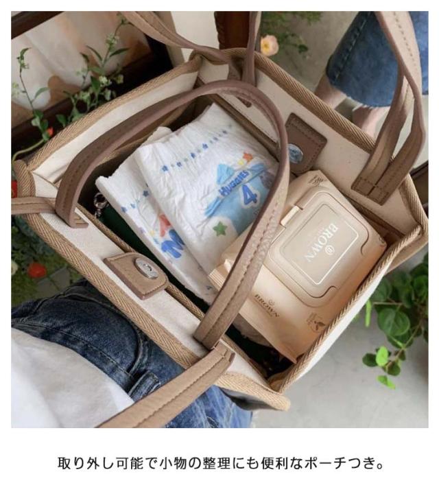 | 大容量でかつスタイリッシュ!機能的なマザーズバッグが新登場! 取り外し可能で小物の整理にも便利なポーチつき。 荷物整理しやすい内ポケットもたくさんついて、大切なものが迷子になりません。 柔らかくて軽量のキャンバス生地を使用し、嵩張らずに軽くて使いやすい。 シワがつきにくく、折りたたんで持ち運びにも便利。汚れた時には手洗いも可能。 底のマチもあるので、お弁当も入れやすいですし、長財布や、水筒などの大きい物もすっぽり入ります。 ちょっとした日用品などの買い物にマイバッグ代わりにも便利。 | |