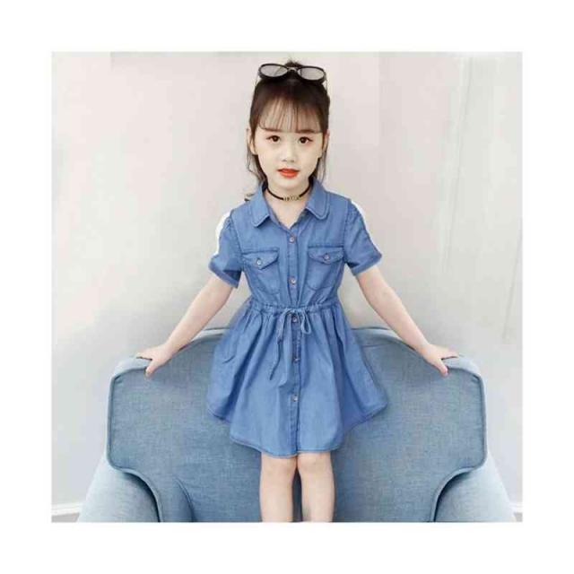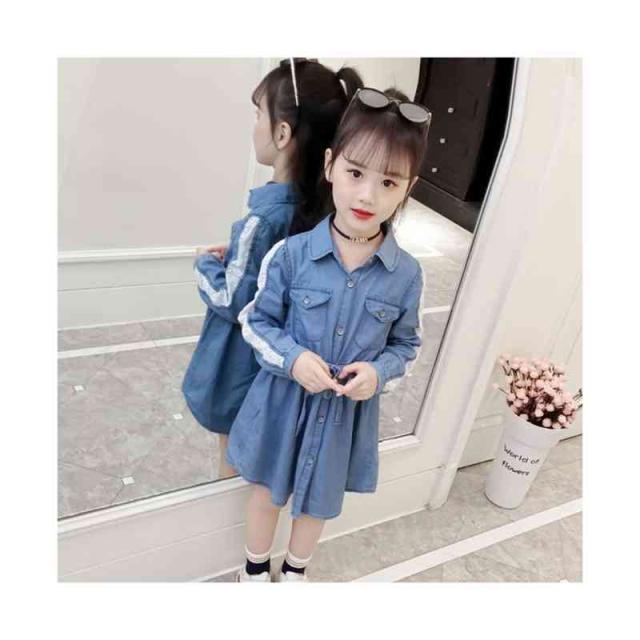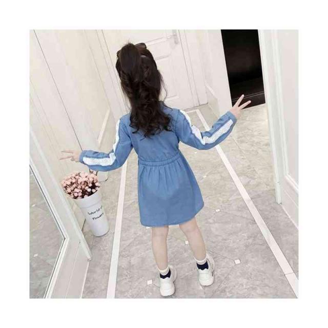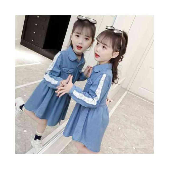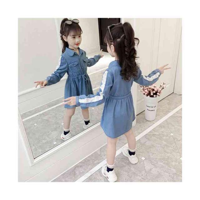 キッズ デニムワンピース レースワンピース 春秋 子供服 ワンピース ロングワンピース ミディアム丈 お嬢様ワンピース 長袖 立ち襟 無地 デニム Aライン シンプル ジュニア 女の子 普段着 フォーマル おでかけ 送料無料
