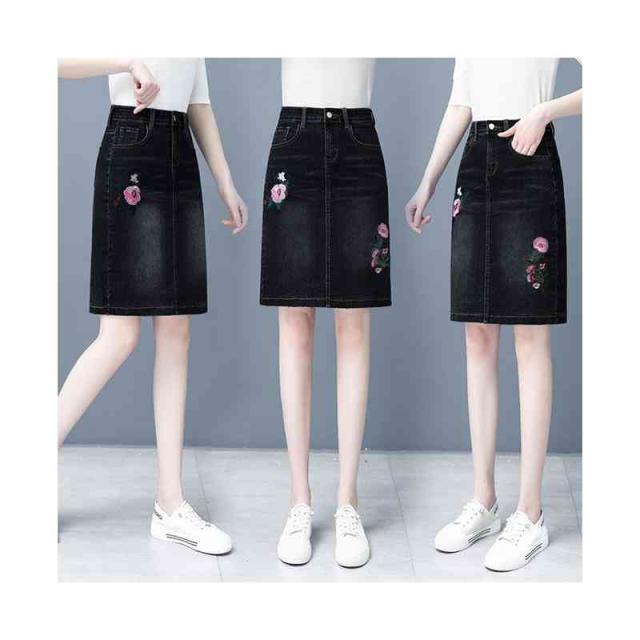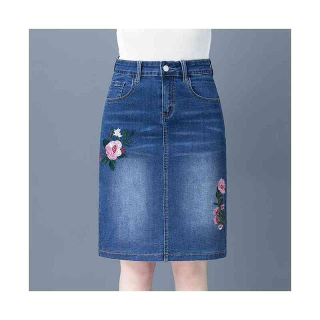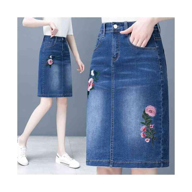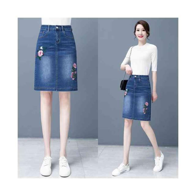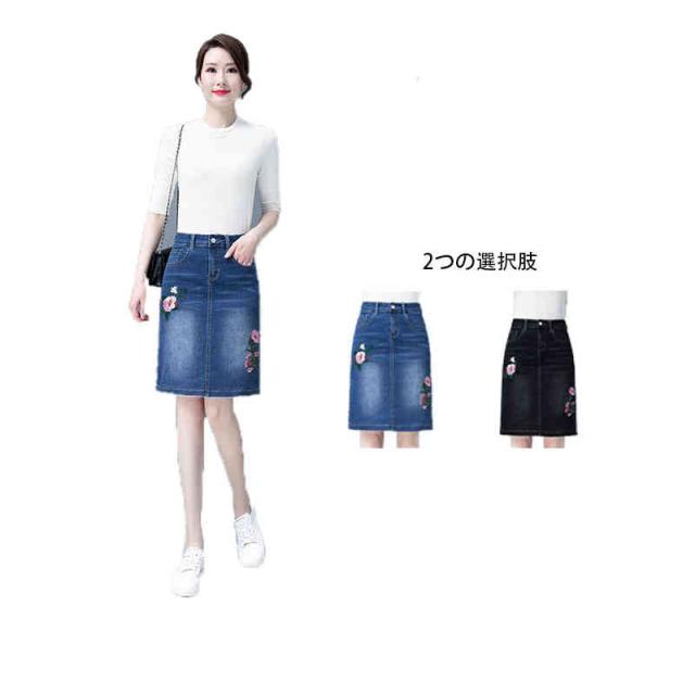 刺繍 デニムスカート レディース ペンシルスカート 春夏 ハイウエスト ミディアム丈 スタイル ボトムス 刺繍 フラワースカート 着痩せ デニム シンプル カジュアル おしゃれ フェミニン 普段着 おでかけ フォーマル 送料無料