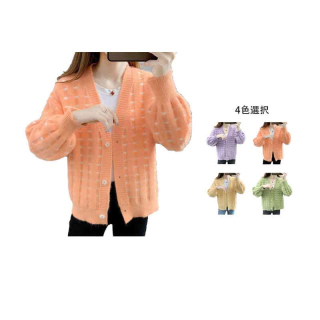 ニットカーディガン レディース ニット 春秋 ショ-ト丈 ボーダー柄 Vネック 長袖 カーディガン セーターカーディガン 学生服 スタイル トップス シンプル カジュアル おしゃれ フェミニン おでかけ 送料無料