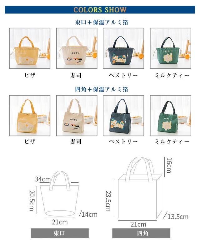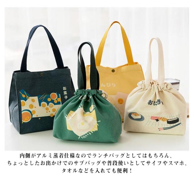 | おしゃれでかわいい、保冷・保温仕様のランチバッグ 巾着/四角 ポーチタイプなので、バッグの中に入れてお使いいただけます。 内側がアルミ蒸着仕様なのでランチバッグとしてはもちろん、 ちょっとしたお出かけでのサブバッグや普段使いとして サイフやスマホ、タオルなどを入れても便利! | |