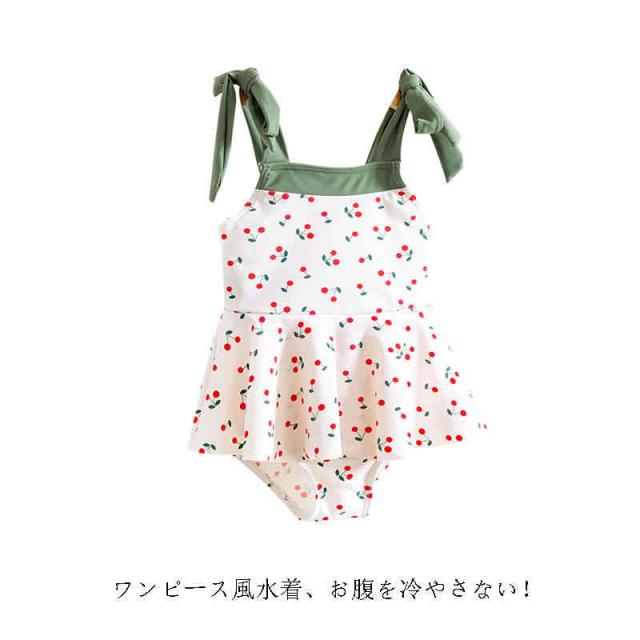 ワンピース水着 キッズ 女の子 オールインワン チェリー柄 子ども 水着 スクール水着 キッズ水着 ガールズ ベビースイミング 小学校 入園グッズ 女児 幼稚園 女の子 おしゃれ プリンセス かわいい
