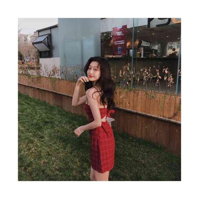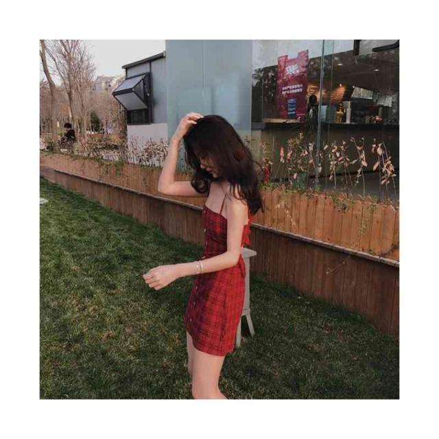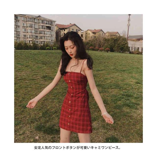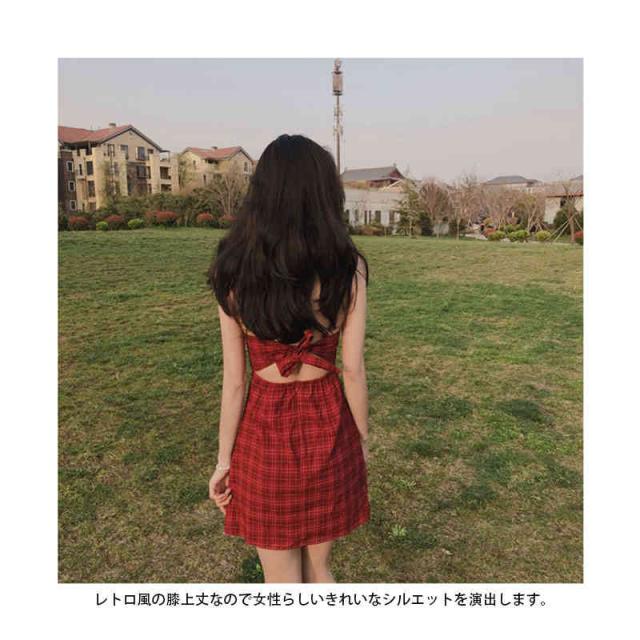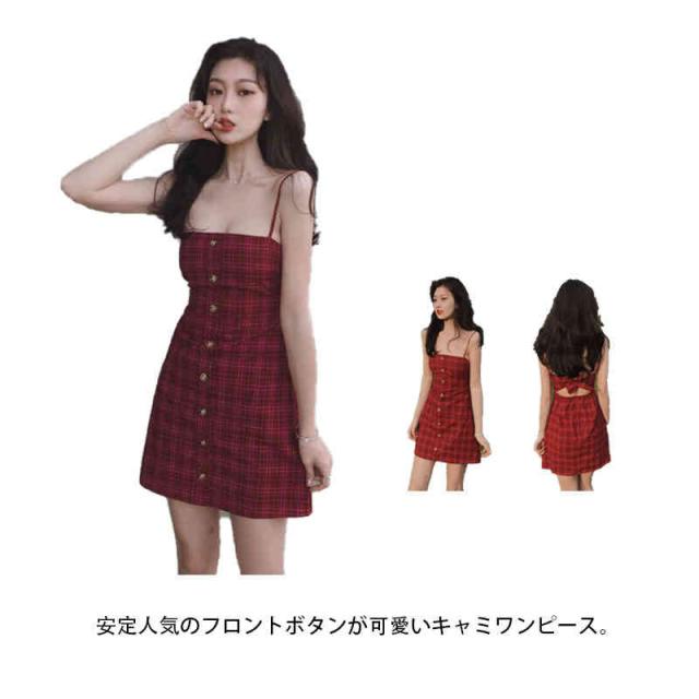 ミニワンピース キャミワンピース レディース 膝上丈 サロペット バックレス スリム チェック柄 袖なし オールインワン 前ボタン セクシー 春 夏 おしゃれ