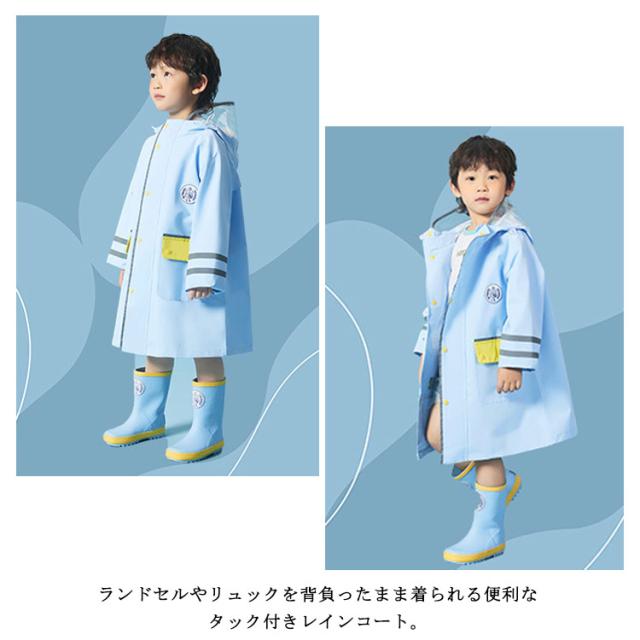| ランドセルやリュックを背負ったまま着られる便利なタック付きレインコート。 雨の日の保育園や幼稚園、小学校への通学にぴったり! 水滴をはじく撥水加工済みで汚れもつきにくく、お手入れもラク。 お気に入りのレインウェアで、雨の日のお出掛けが一段と楽しくなります。 | |