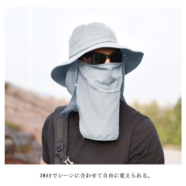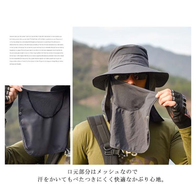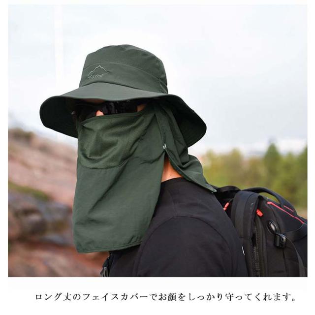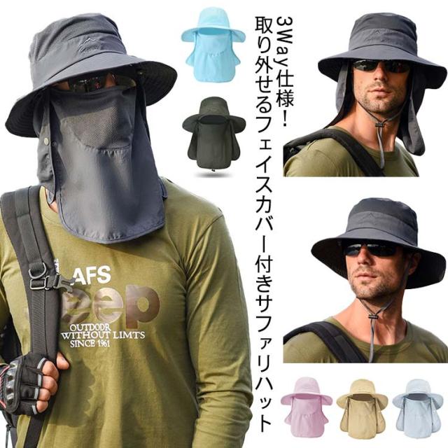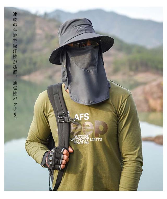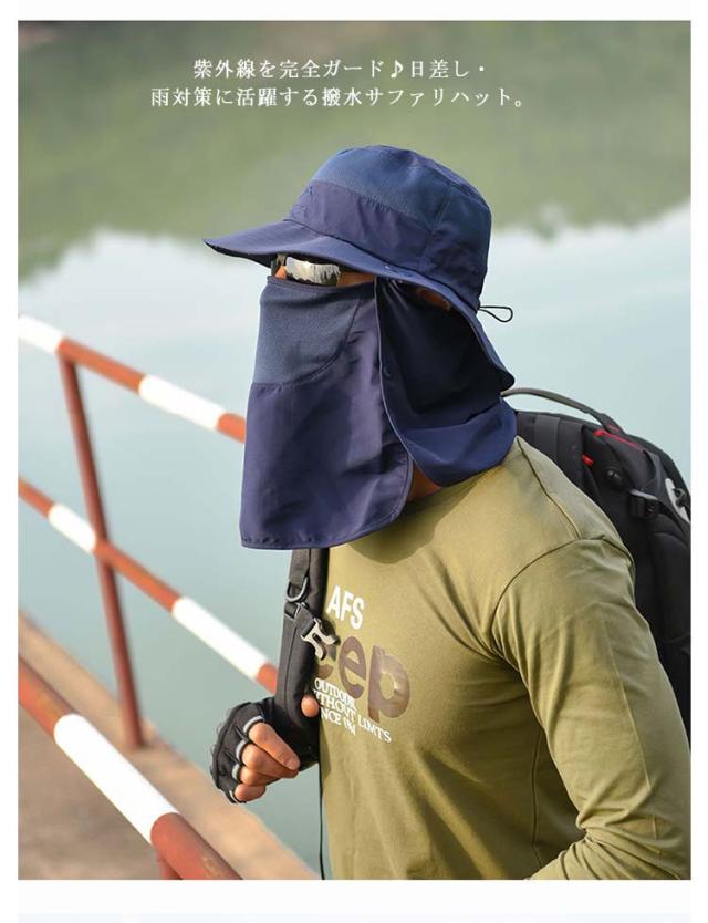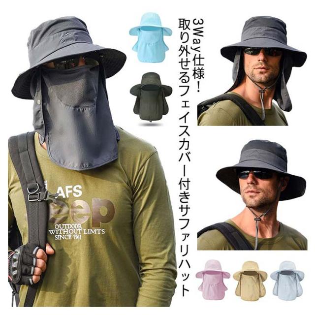 帽子 サファリハット 男女兼用 つば広 ハット メンズ フェイスカバー ネックガード 紐付き 通気性 息苦しくない 速乾 紫外線対策 UVカット 日よけ帽子 折りたたみ 軽量 熱中症対策 キャップ ランニング 釣り アウトドア 登山 農作業 ガーデニング 取り外し可能 送料無料
