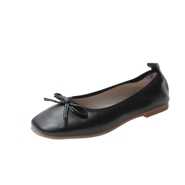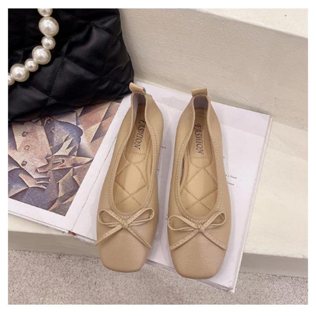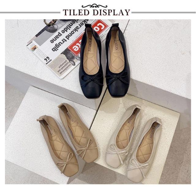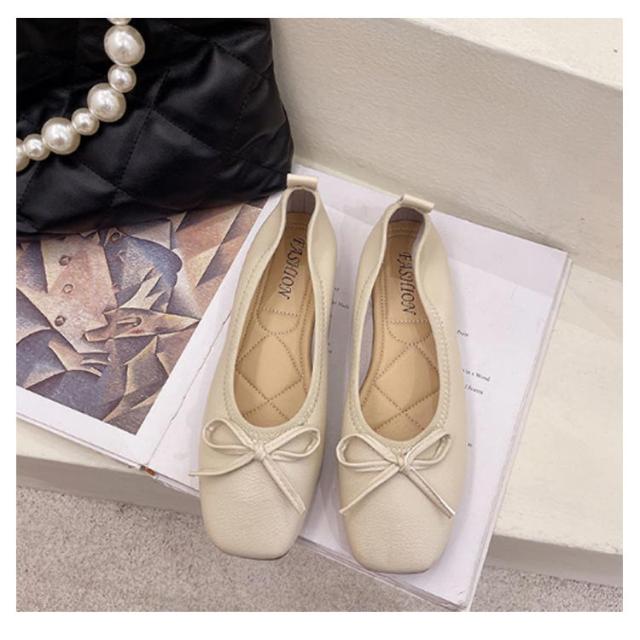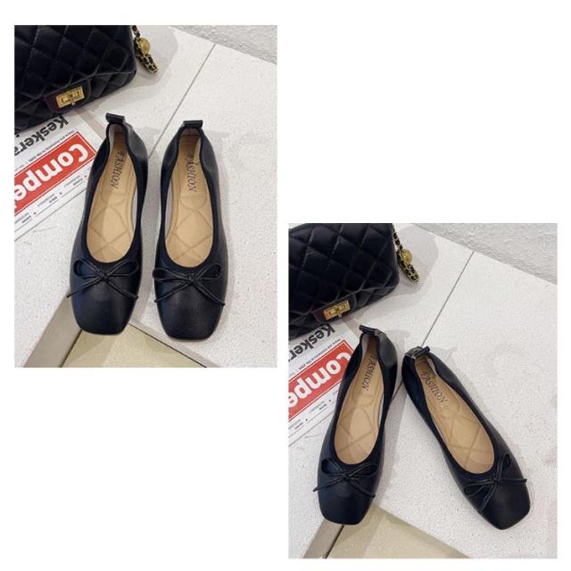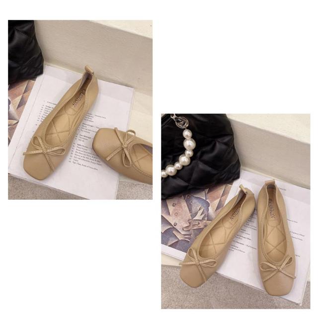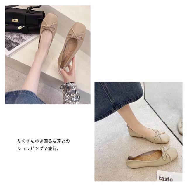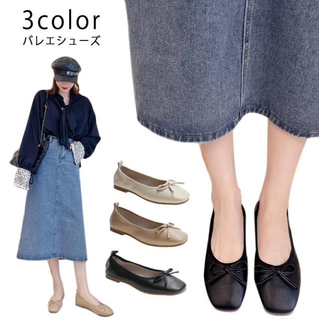 送料無料 パンプス スクエアトゥバレエシューズ バレエシューズ バレエ ぺたんこ フラットシューズ レディース スクエアトゥ リボン 柔らかい 3e ブラック ベージュ