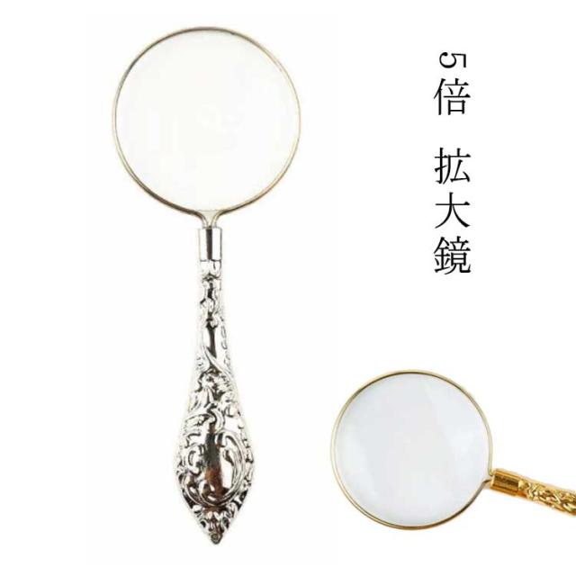 手持ちルーペ 虫眼鏡 5倍 拡大鏡 虫めがね 天眼鏡 観察 読書 作業用 新聞 オシャレ