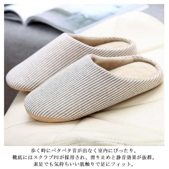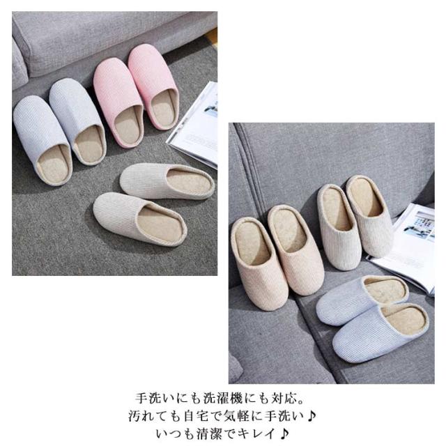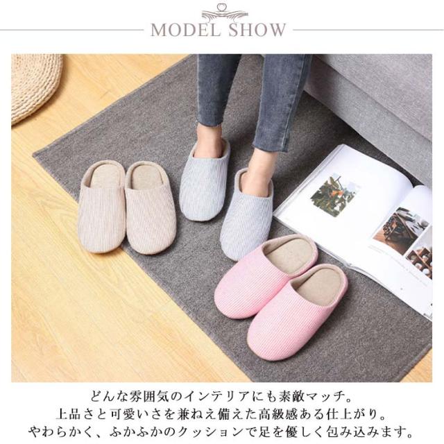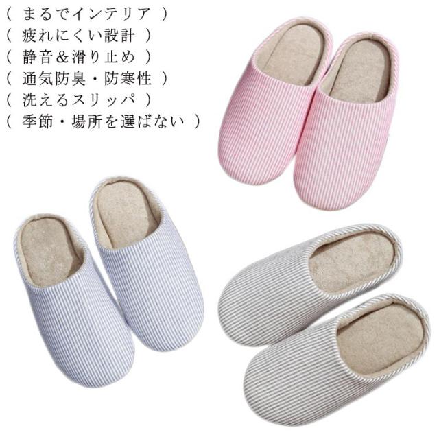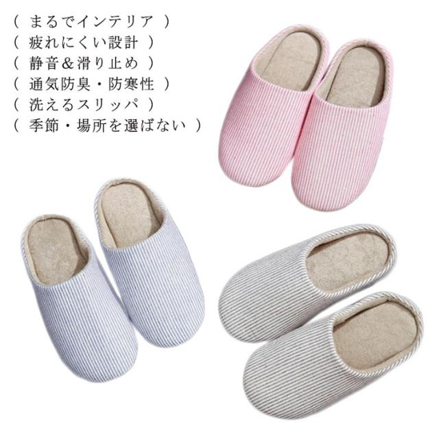 スリッパ メンズ レディース 洗える 春秋 夏 綿麻 コットンリネン ルームシューズ 室内履き 室内用 シューズ 靴 ストライプ柄 北欧風 来客用 部屋 洗えるスリッパ ユニセックス 男性 女性 男女兼用 引っ越し オフィス