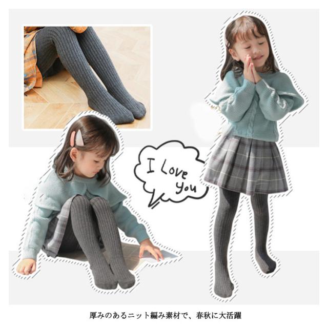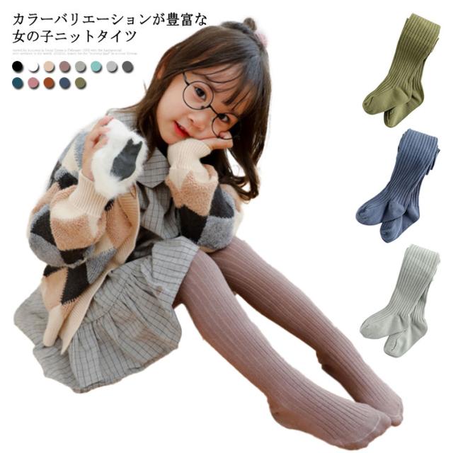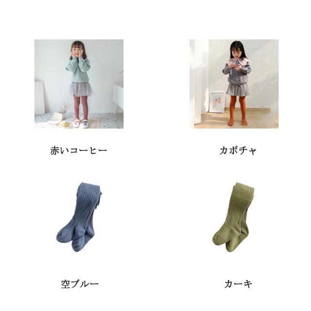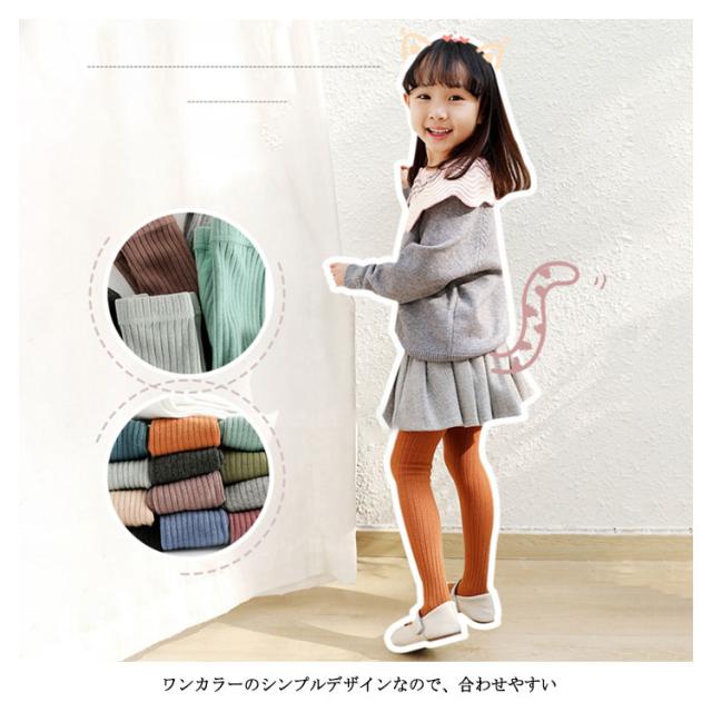 子供タイツ キッズ タイツ リブ編み 女の子 幼児 子供 靴下 赤ちゃん ベビー ニットタイツ スパッツ 無地 おしりマチ ずり落ちにくい かわいい 送料無料