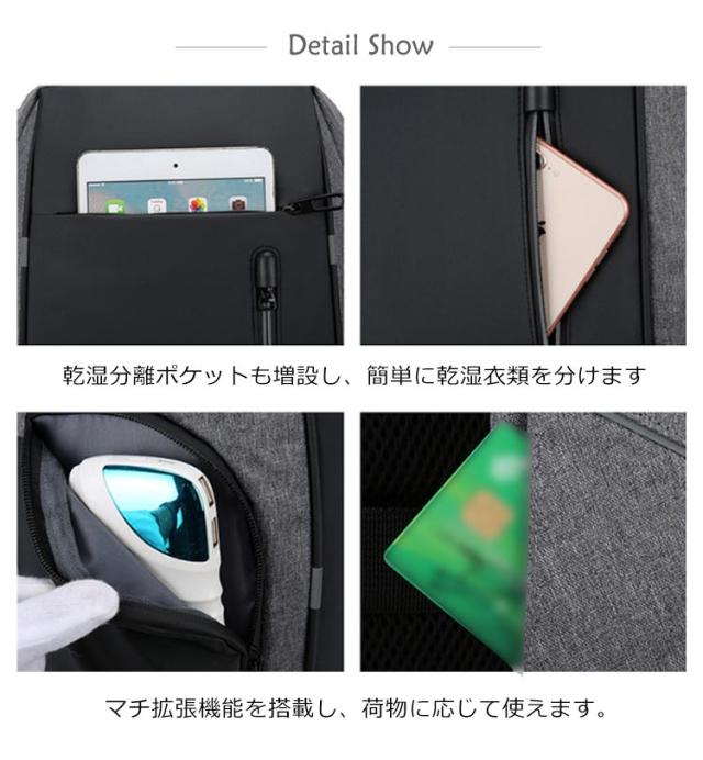 | 【優れた防水性能】表面は丈夫な高密度オックスフォード防水生地で、雨がカバンの中まで入り込むことはなく、雨による水滴や汚れも寄せ付けません。乾湿分離ポケットも増設し、簡単に乾湿衣類を分けます 【符合人間工学】マチ拡張機能を搭載し、荷物に応じて使えます。鞄はチェストベルトとS形科学的な荷重の肩ヒモを採用。肩と背中の負担を効果的に分散させ、背負う時の圧力を軽減し、肩ずれも防止できます 【3WAYビジネスバッグ】驚くほどの収納力と使いの利便さを兼ね備えた人気バッグ登場!3WAY仕様(リュック、横手提げ、縦手提げタイプ)となっており、通勤 出張 通学 旅行など様々なシーンに合わせてご活用いただけます | |
