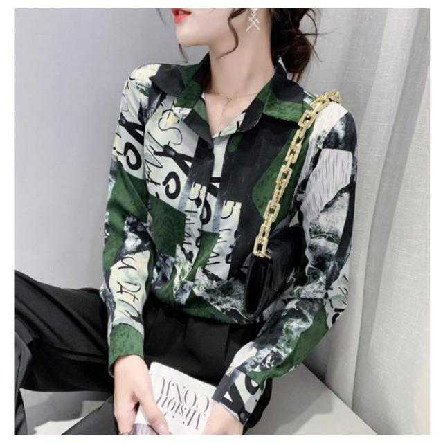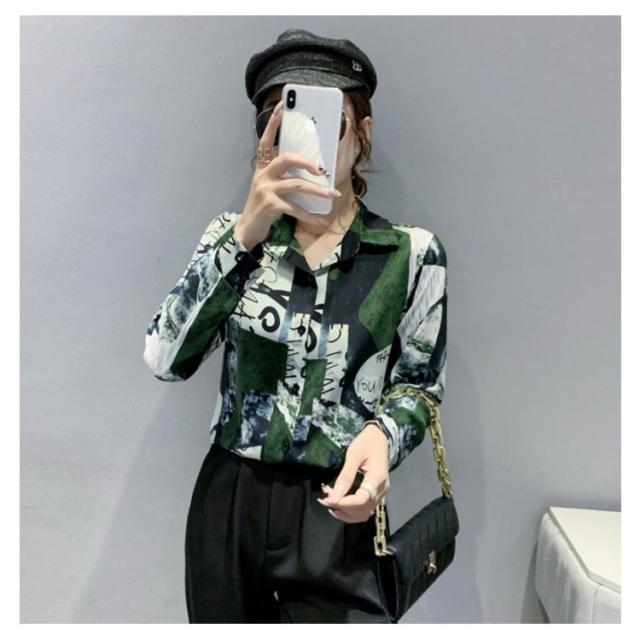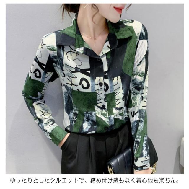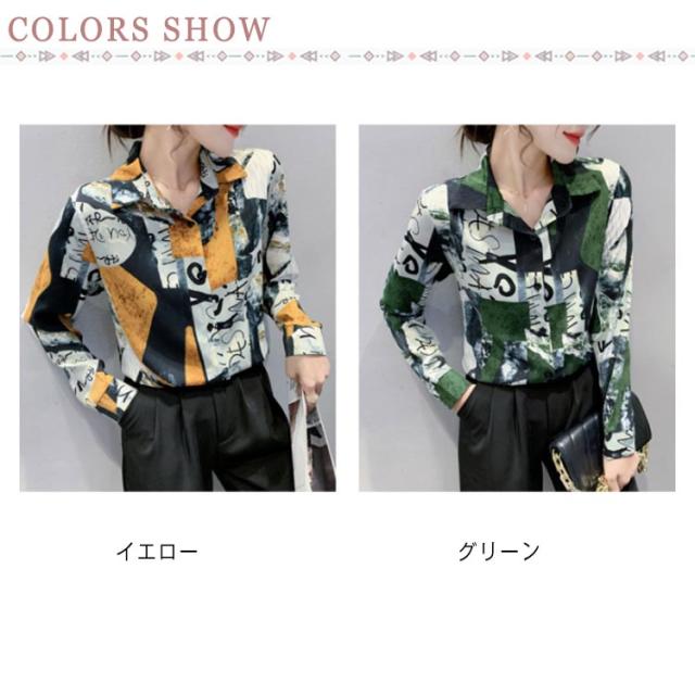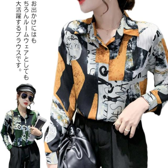 シャツ 長袖 プリント柄 バイカラー 大きいサイズ カジュアル ゆったり トップス ブラウス 総柄 トレロ 春服 お洒落 ジャージ 普段着