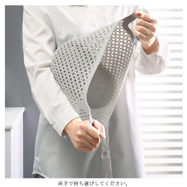 | お洗濯以外にも、収納バスケットとしても使用できます。 リビングやダイニングなどお家で散らかりがちな小物や、お子さまのおもちゃなどをひとまとめにスッキリ収納! 両手で持ち運びしてください。 | |