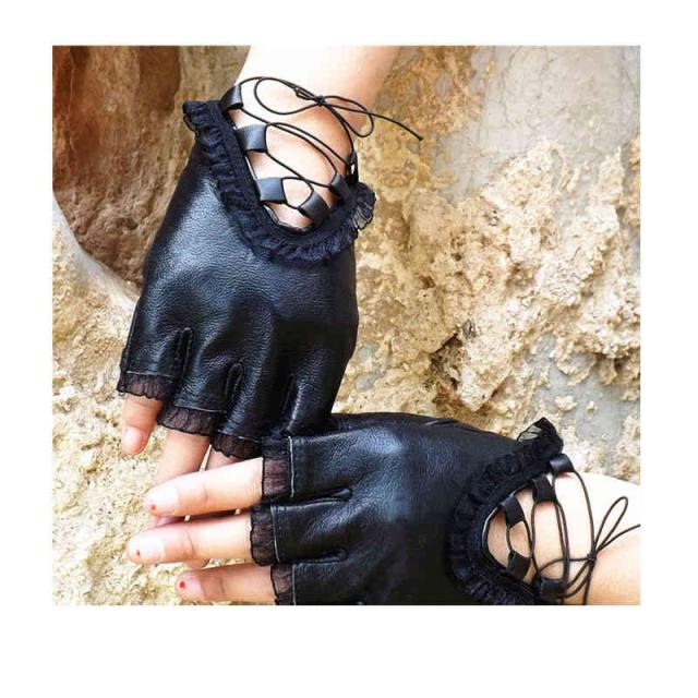 レースグローブ 指無し レディース 本革 手袋 羊皮 紐調整 指なし キッズ 子供 ジュニア ブライダル ダンス衣装 結婚式 イベント パーティー ヒップホップ コンテスト 発表会 舞台 コスプレ コスチューム