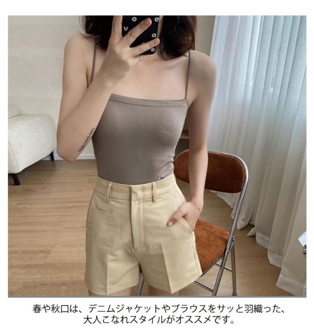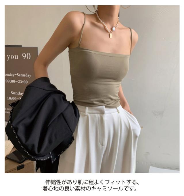 | キャミソール 伸縮性があり肌に程よくフィットする、着心地の良い素材のキャミソールです。 シャツやブラウスのインナーとして活躍する一着で、夏には一枚でトップスとしても使える万能アイテム。 春や秋口は、デニムジャケットやブラウスをサッと羽織った、大人こなれスタイルがオススメです。 | |