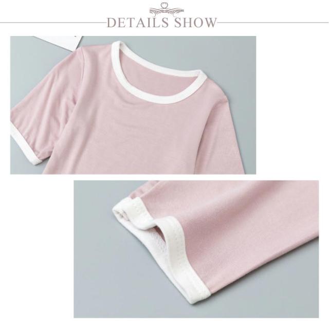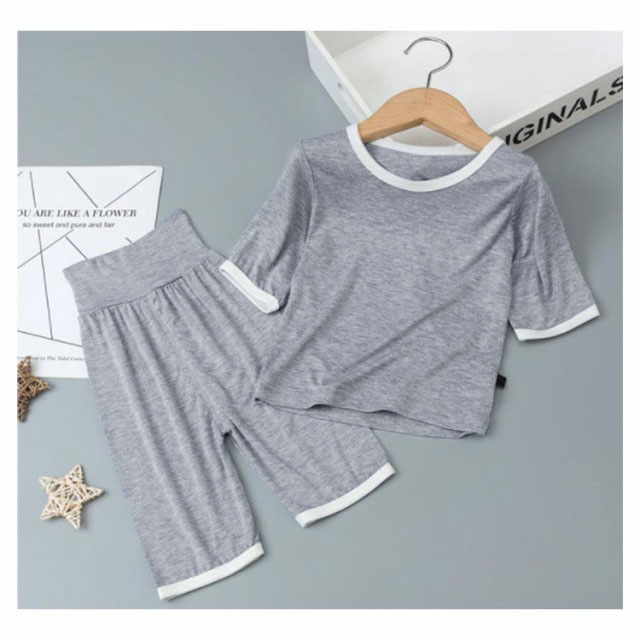 | 5分袖・5分丈ズボンの上下セットのパジャマ。 やわらかな腹巻きがパンツについているのでお腹が冷えにくい。 滑らかで肌触り良く、吸湿性にも優れた綿100%のスムース素材。 | |