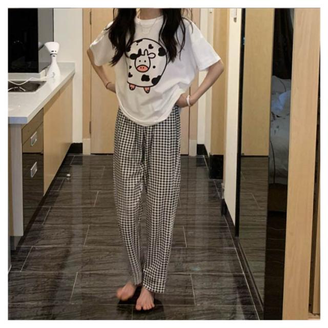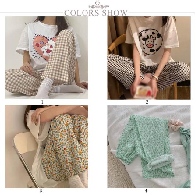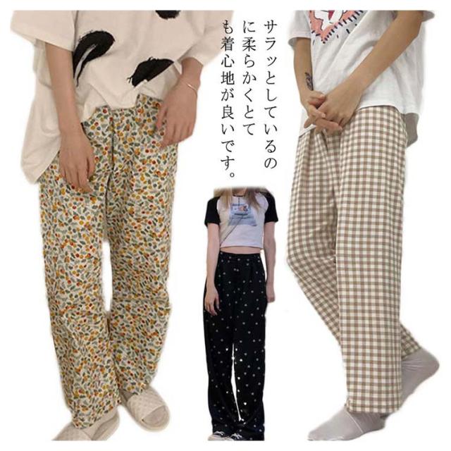 パンツ ルームウェア かわいい 総柄 チェック柄 長ズボン パジャマ下 レディース 春 夏 秋 薄手 ゆったり カジュアル ボトムス ウエストゴム 大きいサイズ 可愛い 部屋着 寝間着 寝巻き 送料無料