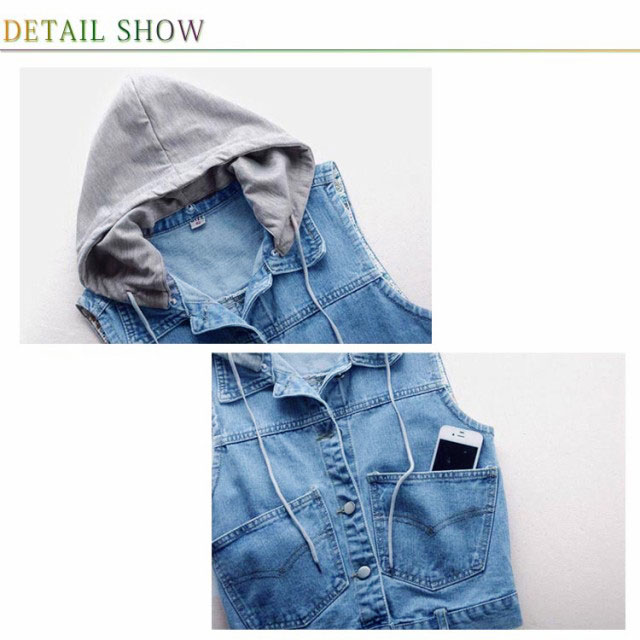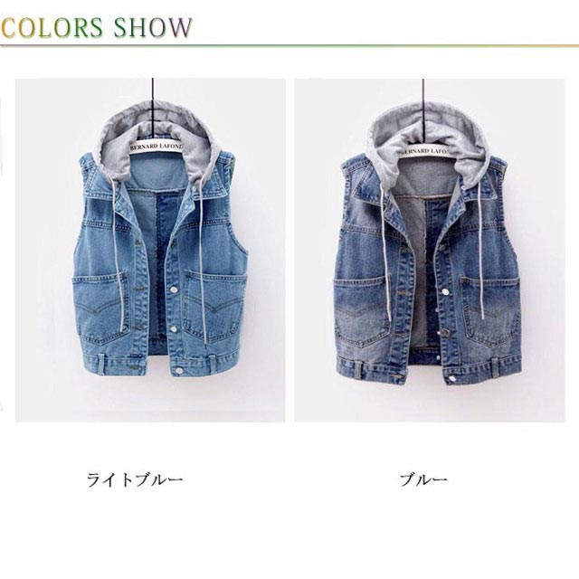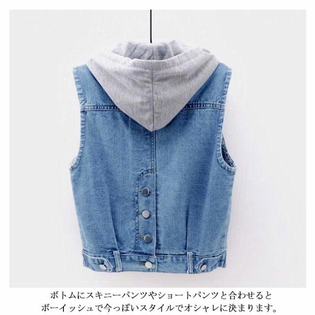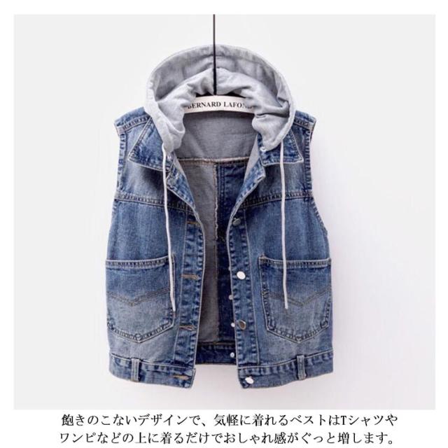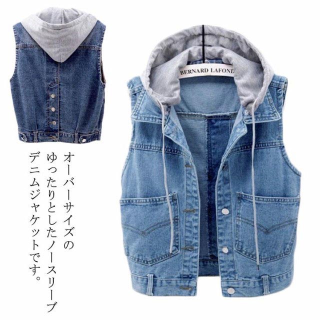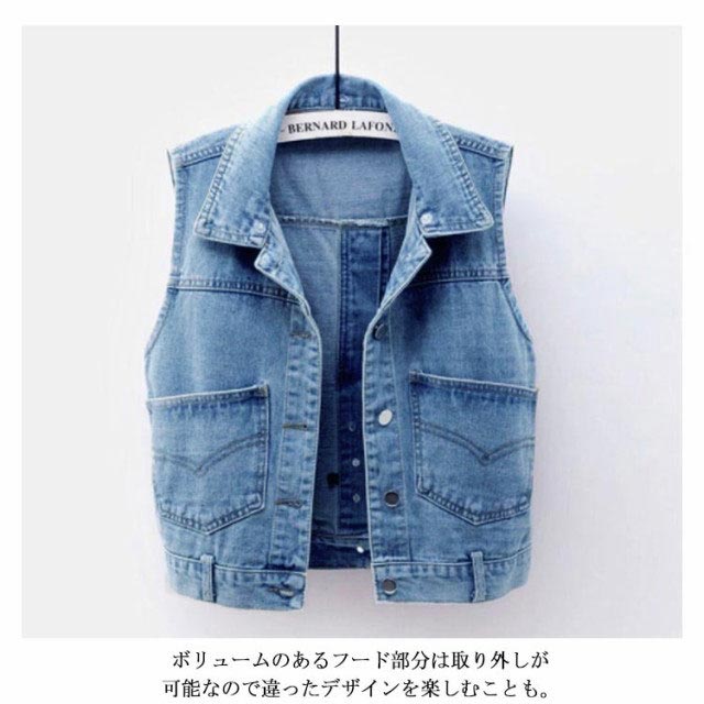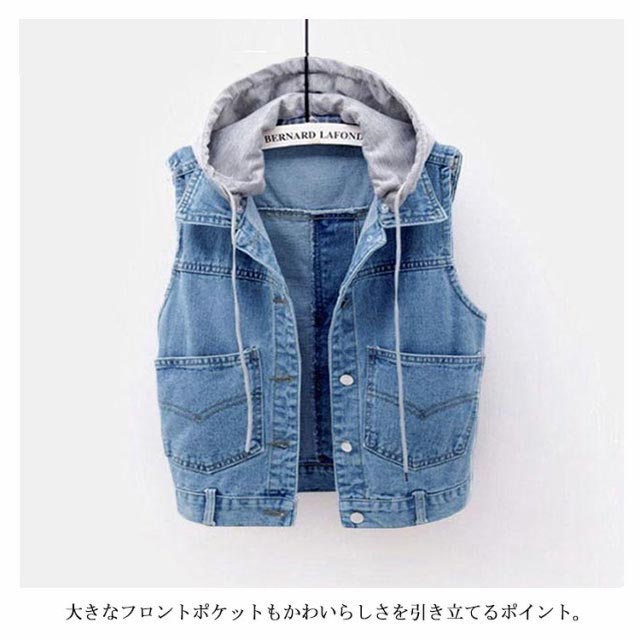 フード付き デニムジャケット レディース デニムベスト デニム ジャケット ベスト フード付き アウター カジュアル 通学 大きいサイズ フード取り外し可能 送料無料