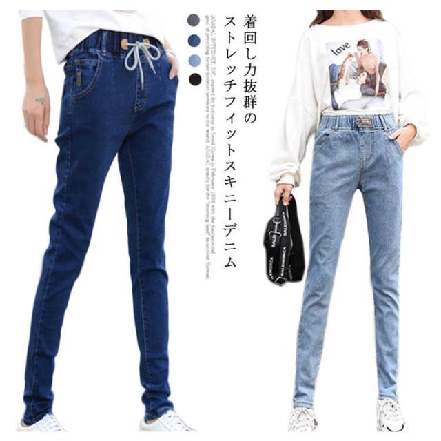 伸びる レディース ボトムス デニム ウエストゴム リラックス スキニー ジーパン ストレッチ 【送料無料】 50代 デニムパンツ 美脚 パンツ 冬 ボトムス 春 夏 秋 大人 大きいサイズ ロング丈 おしゃれ 10代 20代 30代 40代 ジーンズ