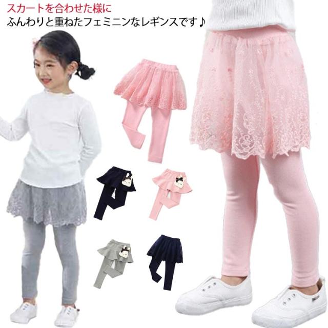 スカッツ 春秋 レギンス ロングパンツ 子供服 スカート付き レギパン ストレッチ 女の子 通学 可愛い ベービー服 キッズ