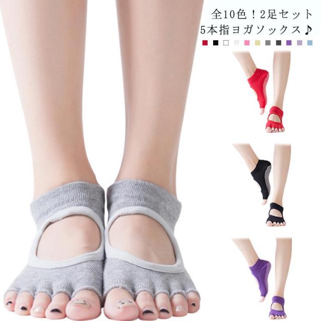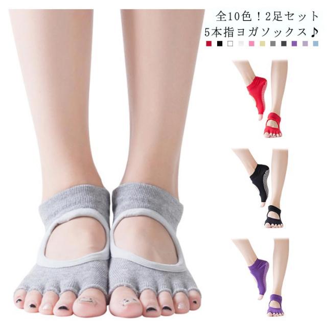 靴下 防臭 5本指 【送料無料】ヨガソックス 2足セット レディース ジム 速乾 ピラティス 指なし ヨガ ウエア ヨガ
