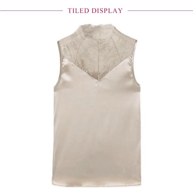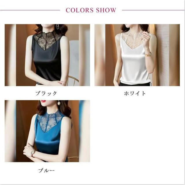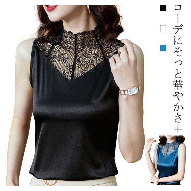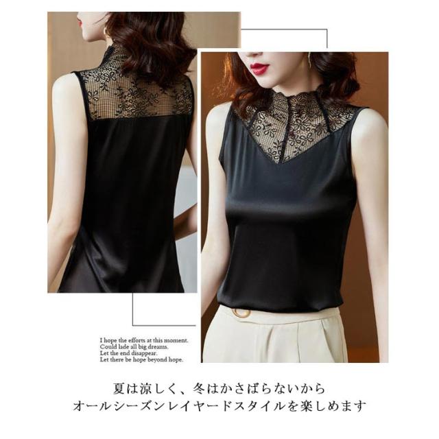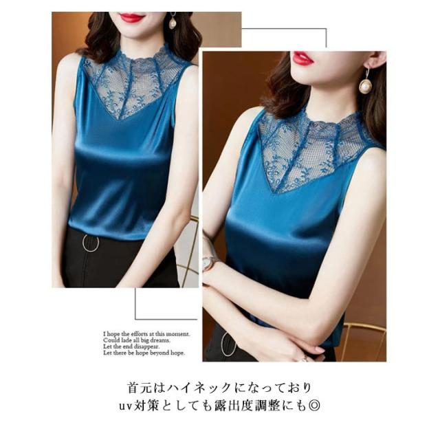 袖なし インナー ハイネック レディース タンクトップ 送料無料 重ね着 トップス 春夏 レイヤード ストレッチ レース ノースリーブブラウス