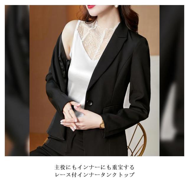 | コーデにそっと華やかさ+ 主役にもインナーにも重宝するレース付インナータンクトップ。 デコルテが繊細なレースに切り替えられたノースリーブトップス、女性らしいフェミニンな印象。 光沢感のある素材、シルクのような着心地がくせになる。 首元はハイネックになっており、uv対策としても露出度調整にも◎ 伸縮性があり、ストレスなくボディーに優しくフィット◎ 夏は涼しく、冬はかさばらないからオールシーズンレイヤードスタイルを楽しめます。 | |