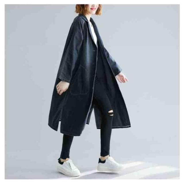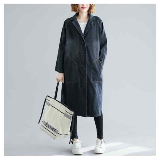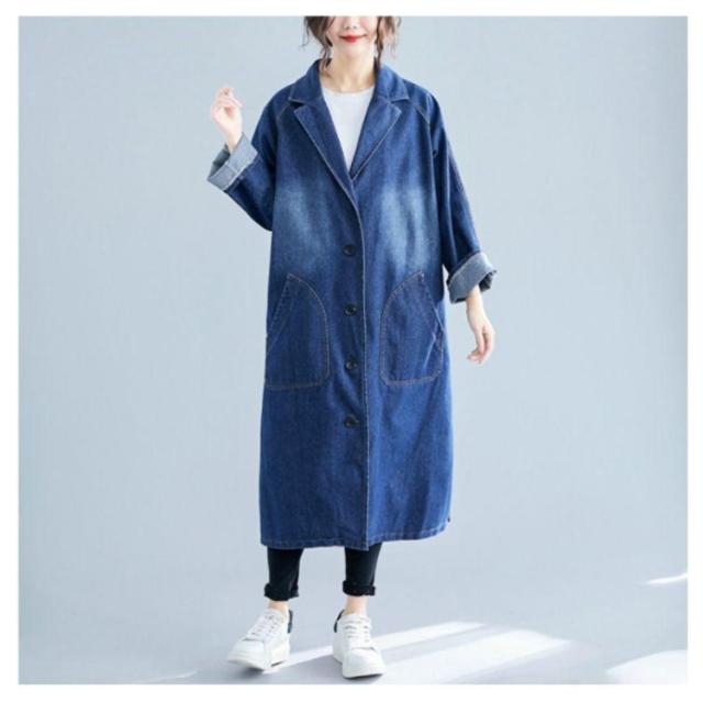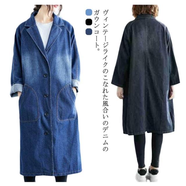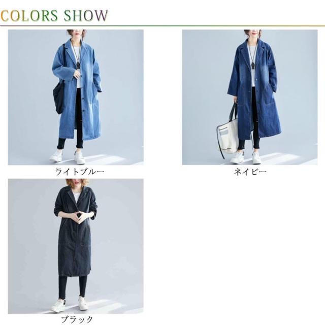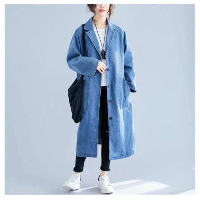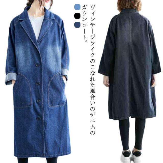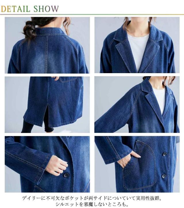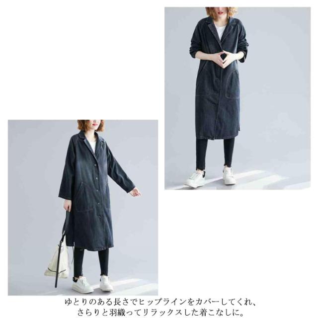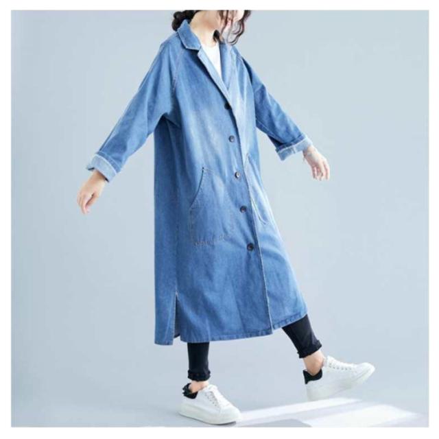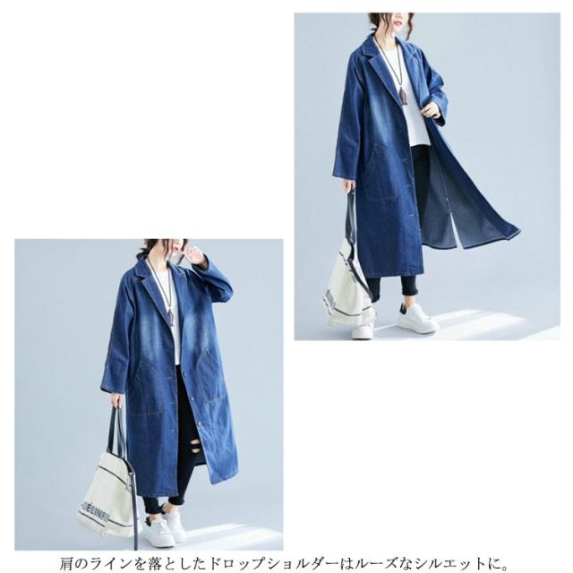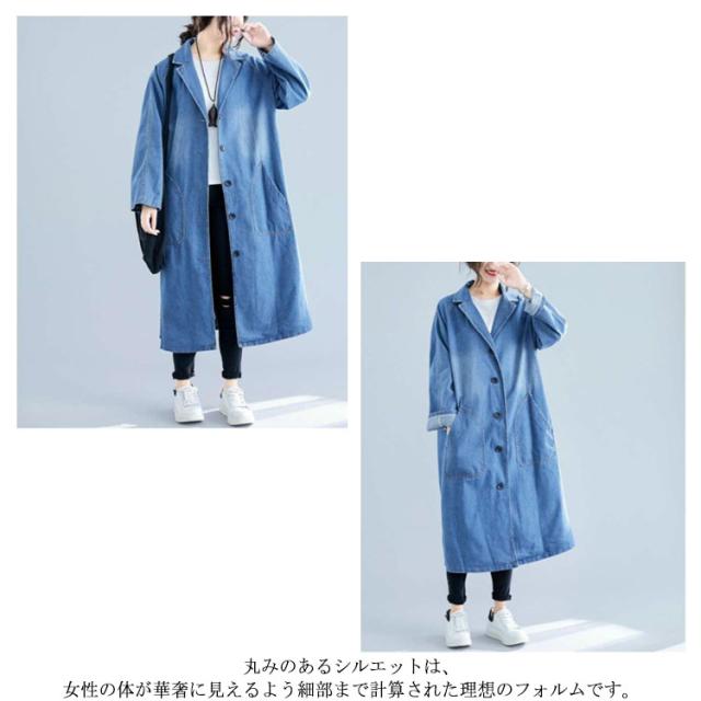 デニムコート デニムジャケット レディース ロング丈 ロングコート デニム パーカー チェスターコート トレンチ コート スプリング ゆったり アウター 前開き ガウン 大人 カジュアル エスニック オフィス 通勤 通学 春 秋 冬
