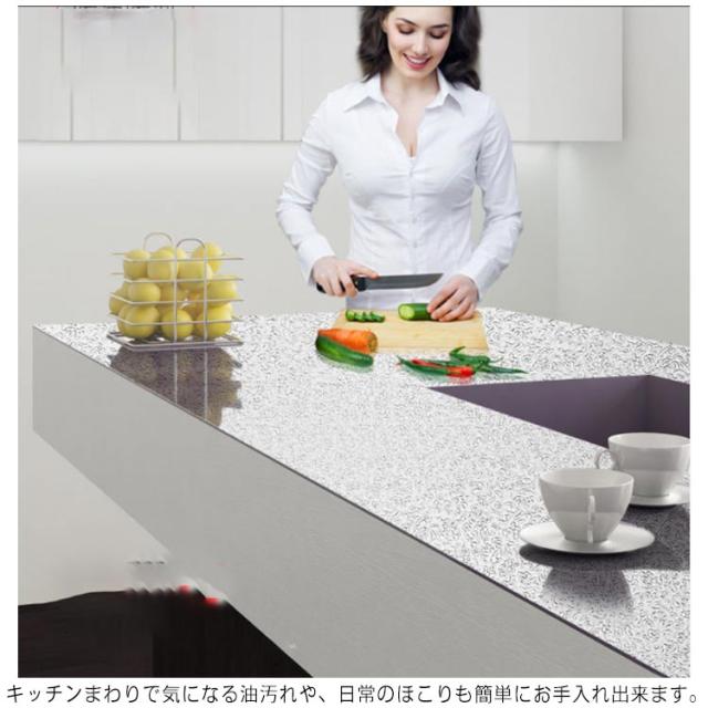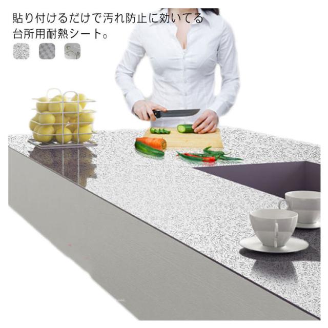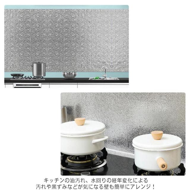 | 貼り付けるだけで汚れ防止に効いてる台所用耐熱シート。 キッチンの油汚れ、水回りの経年変化による汚れや黒ずみなどが気になる壁も簡単にアレンジ! 防水性・防汚性にも優れ、お手入れは濡れタオルで拭き取るだけです。 キッチンまわりで気になる油汚れや、日常のほこりも簡単にお手入れ出来ます。 60*500cmと40*1000cmの2タイプ、ハサミで自由にカットできます。 キッチン周りの油汚れ防止や引き出しの中や靴箱、トイレや洗面所等々、使い方はさまざま! アルミニウム素材製で、剥がす時も楽々剥がせて跡が残りにくい! | |