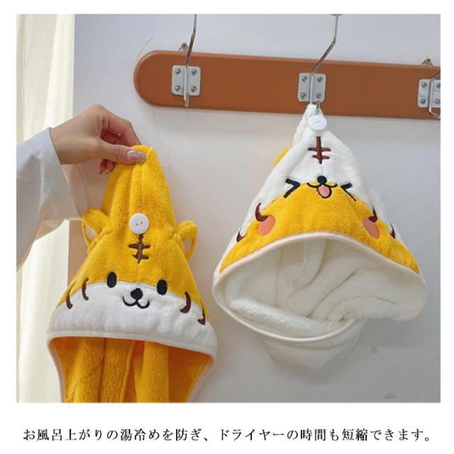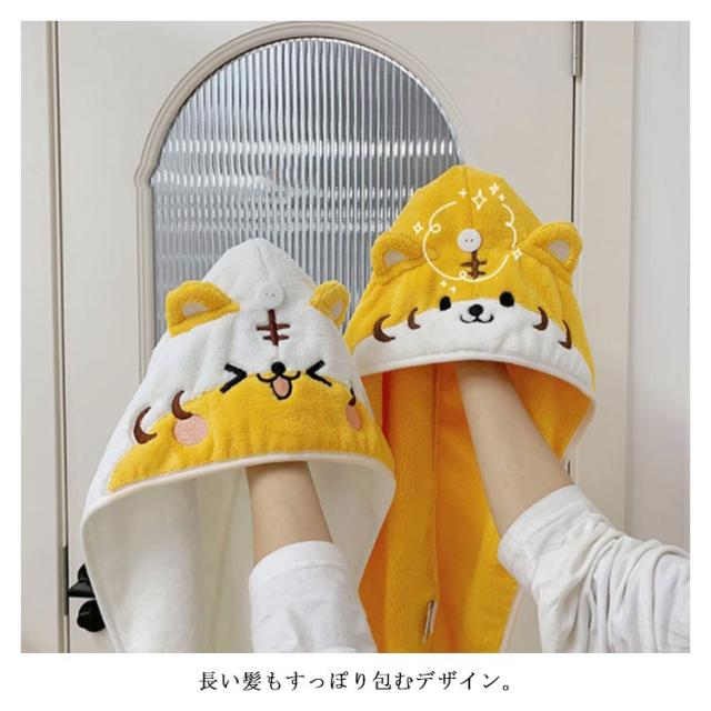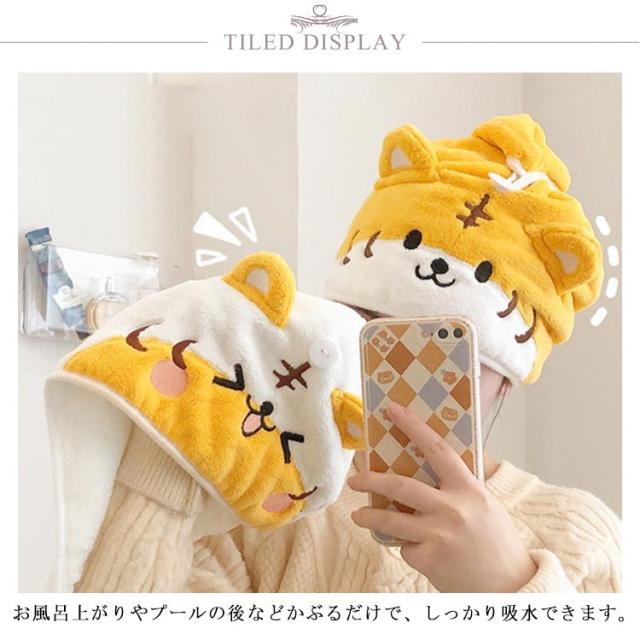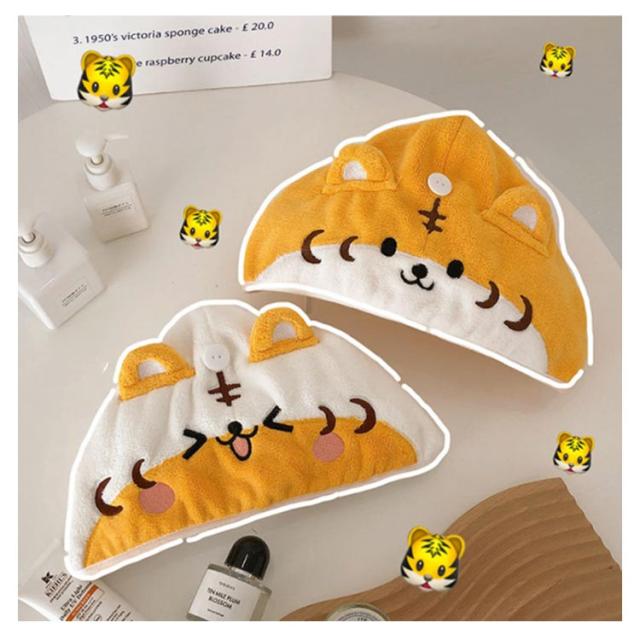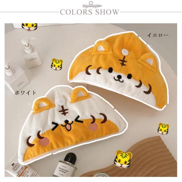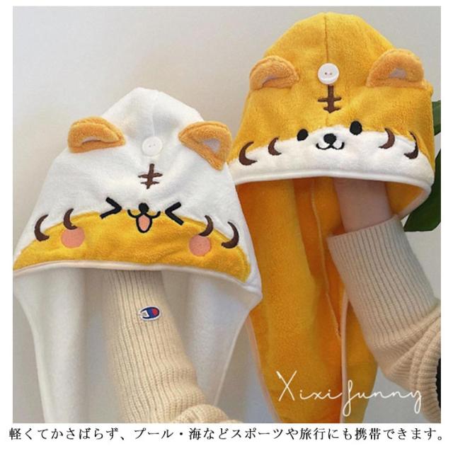 タオルキャップ ドライキャップ ヘアドライ タオル 耳付き 吸水 速乾 柔らい マイクロファイバー ヘアターバン 可愛い おしゃれ 動物 虎 お風呂上り 便利グッズ バス用品
