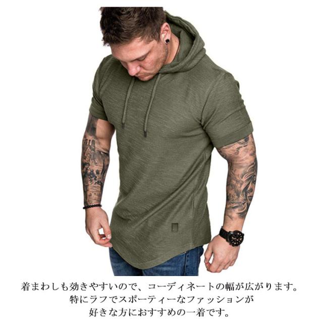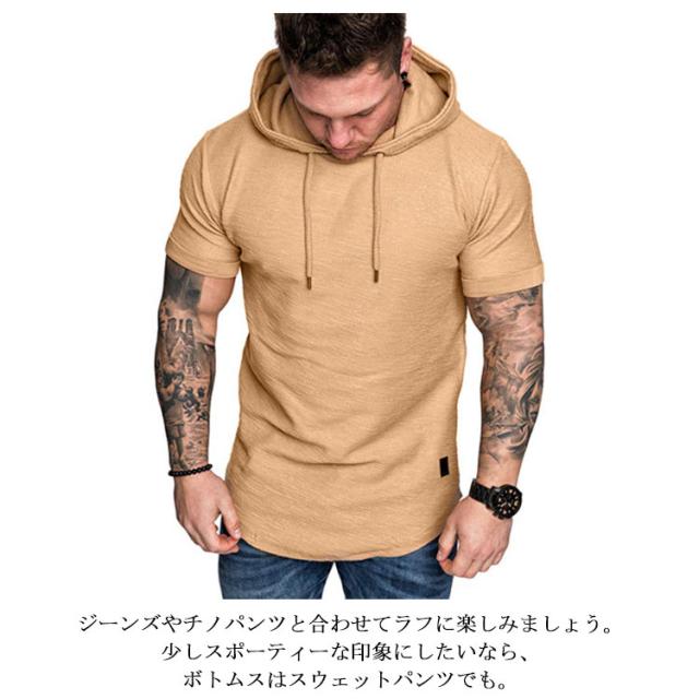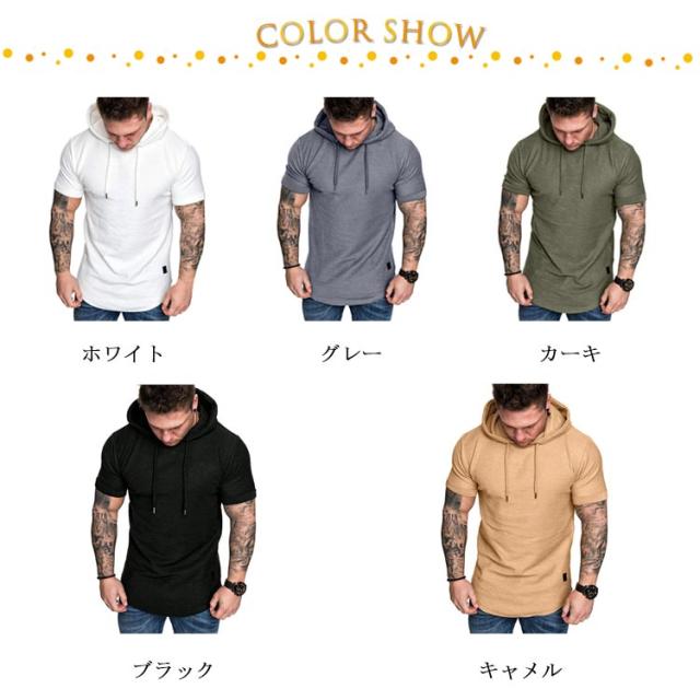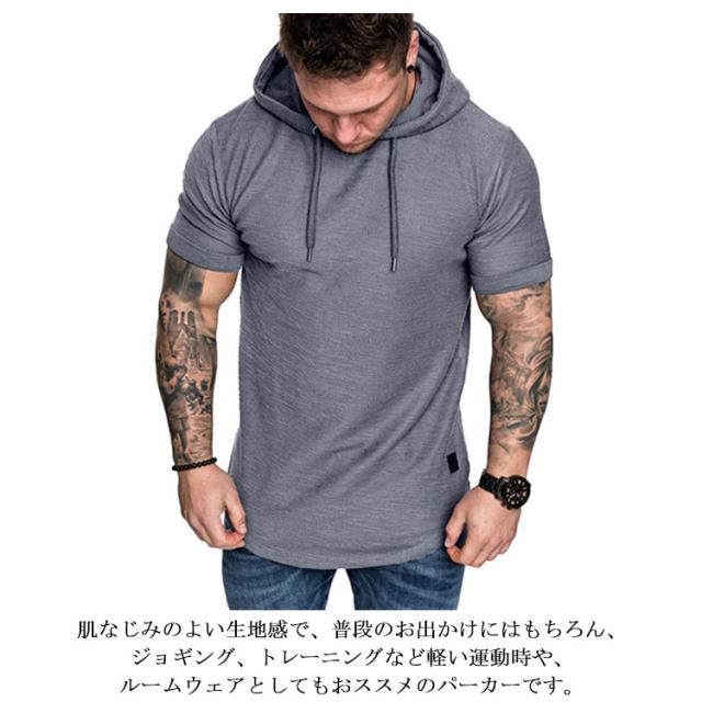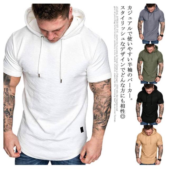 パーカー メンズ 半袖 トレーナー スウェット フード付き プルオーバーパーカ スポーツ 運動 トレーニング 普段着 夏物 夏服 春 夏 無地 カジュアル ホワイト グレー カーキ ブラック 父の日 プレゼント ギフト
