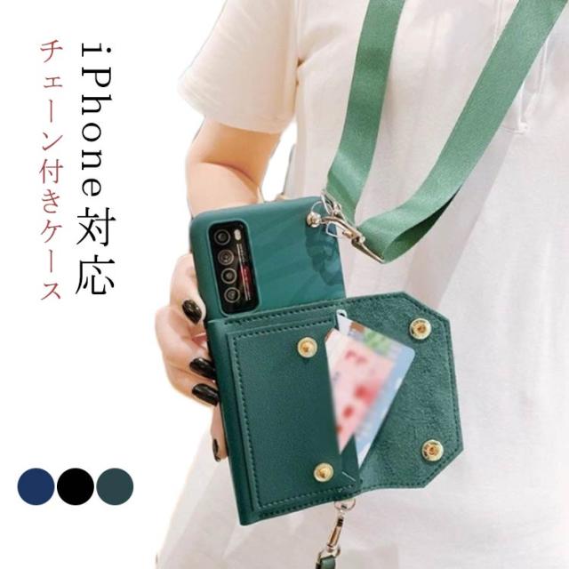 iPhone13ケース iPhone12ケース ショルダースマホケース チェーン付き 韓国人気 カード入れ ブラック ブルー グリーン iPhone12 アイフォン12ケース 12Pro mini Pro Max iPhoneXS iPhone11 iPhoneX Max iPhoneXR iPhone 11 Pro Max