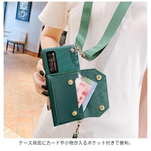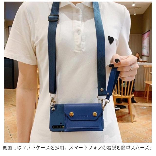 | ショルダーストラップ付きスマホケース。 2タイプストラップは取り外し可能。 ケース背面にカードや小物が入るポケット付きで便利。 側面にはソフトケースを採用、スマートフォンの着脱も簡単スムーズ。 | |