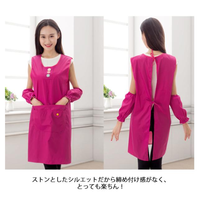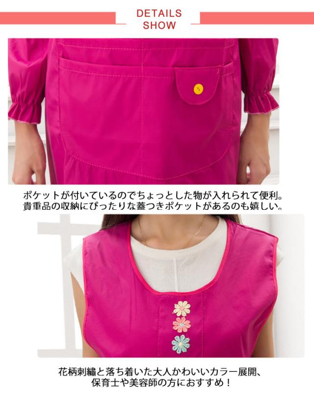 【送料無料】エプロン ワンピース ショート丈 チュニック マルチポケット付 チュニックエプロン 撥水加工 かぶり 花柄 刺? かわいい おしゃれ レディース 女性用 保育士 介護士 仕事用 料理教室 クッキング ギフト プレゼント