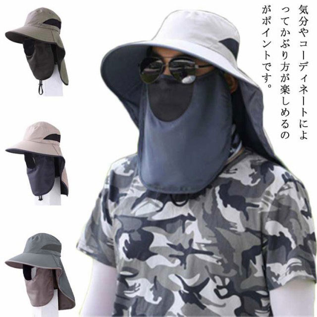 日よけ帽子 サンバイザー レディース メンズ フェイスカバー ネックカバー サンハット キャップ UVカット 日焼け防止 紫外線対策 遮光 自転車 海 アウトドア 農作業 釣り つば広 春 夏 秋 男女兼用 20代 30代 40代 50代 60代