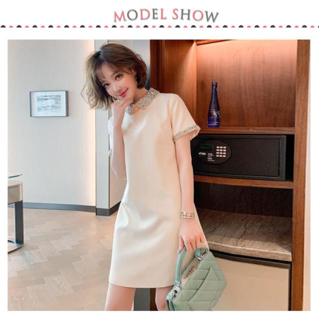 送料無料 ワンピース レディース ショート丈 半袖 ワンピース きらきら 折襟 ポロシャツ ワンピ 膝上 Aライン フレア ドレス ゆったり 無地 大人 上品 きれいめ フェミニン フォーマル カジュアル 二次会 パーティードレス 結婚式 通勤 入学式 入園式 卒業式 春 夏