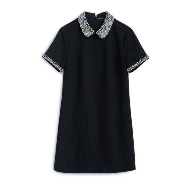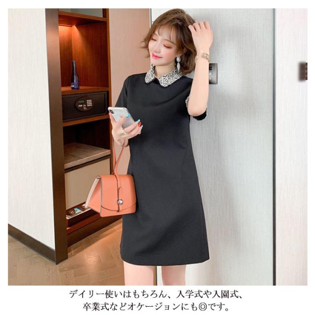 | 袖口やネックにあしらったフェイクダイヤが華奢に見えるワンピース。 裾がほどよくフレアーになったシルエットが女性らしいデザインで、シーンに合わせて着こなせるのもポイント。 デイリー使いはもちろん、入学式や入園式、卒業式などオケージョンにも◎です。 1枚でももちろん、アウターを羽織っても綺麗に収まります。 | |