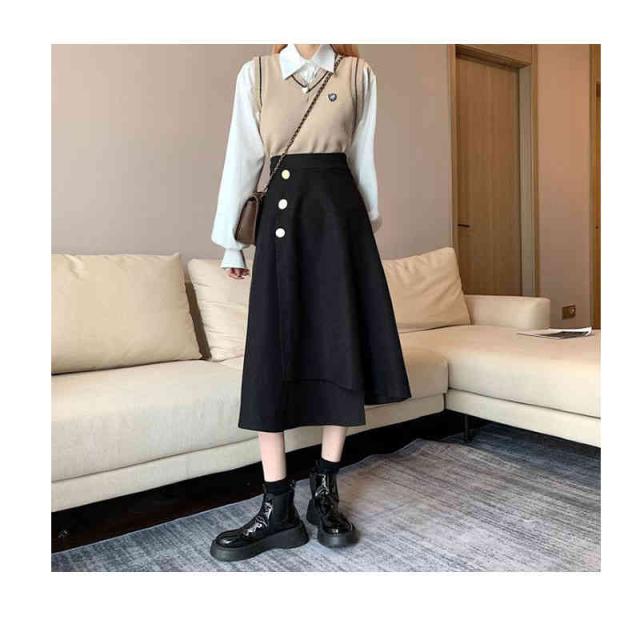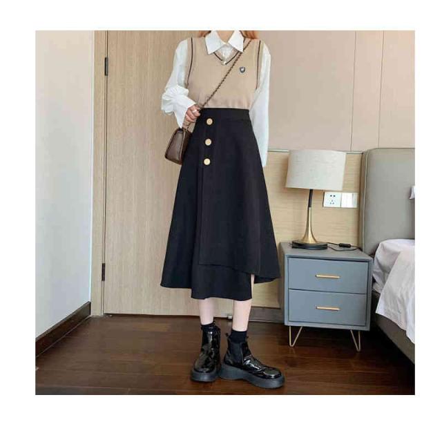 ロングスカート レディース 春 秋 冬 切り替え ハイウエスト ミディアム丈 スカート ボトムス フレアスカート 無地 Aライン 無地 シンプル カジュアル おしゃれ フェミニン フォーマル おでかけ 送料無料