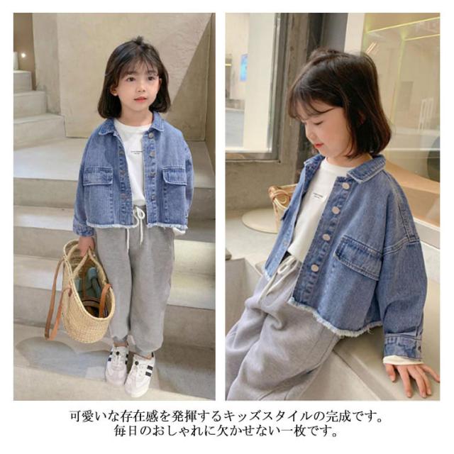 子供服 デニムジャケット アウター コート 女の子 カーディガン ショートコート Gジャン ジージャン トップス 長袖 デニム アウター 上着 羽織り 通園 可愛い カジュアル 90 100 110 120 130 140