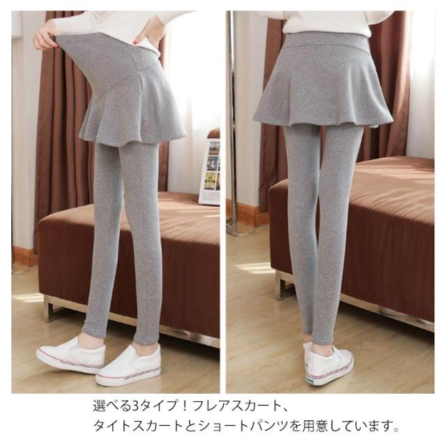 選べる3タイプ マタニティ スカート付きレギンス スカッツ レディース ストレッチ フレア スカート ショートパンツ付きレギンス 秋冬 ハイウエスト かわいい M-4XL 送料無料