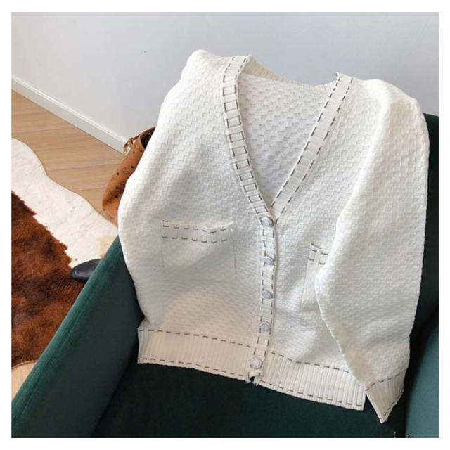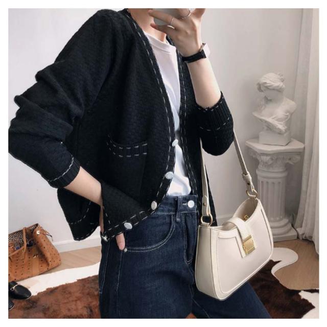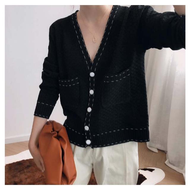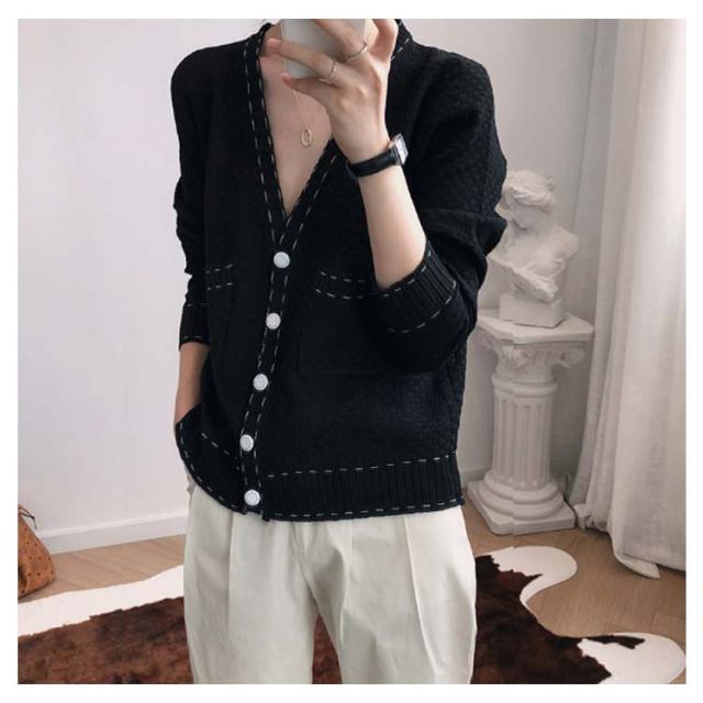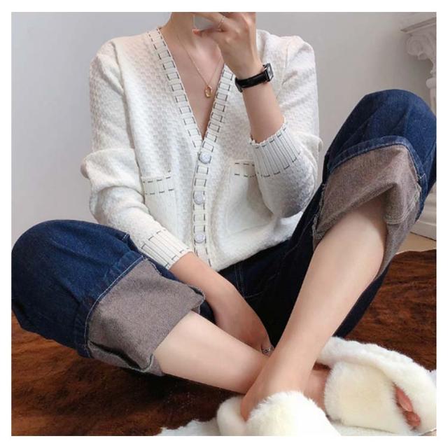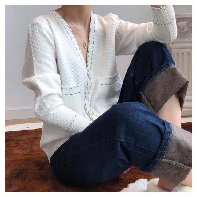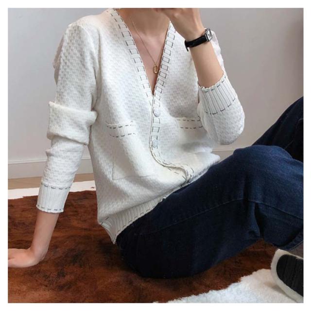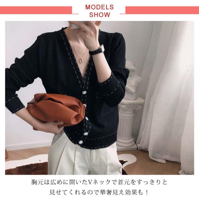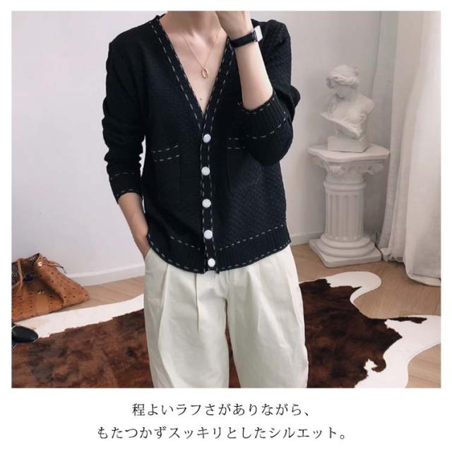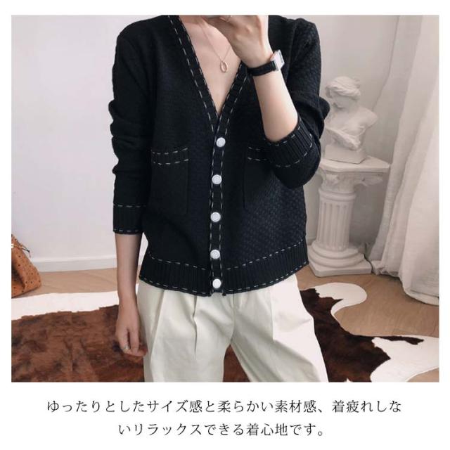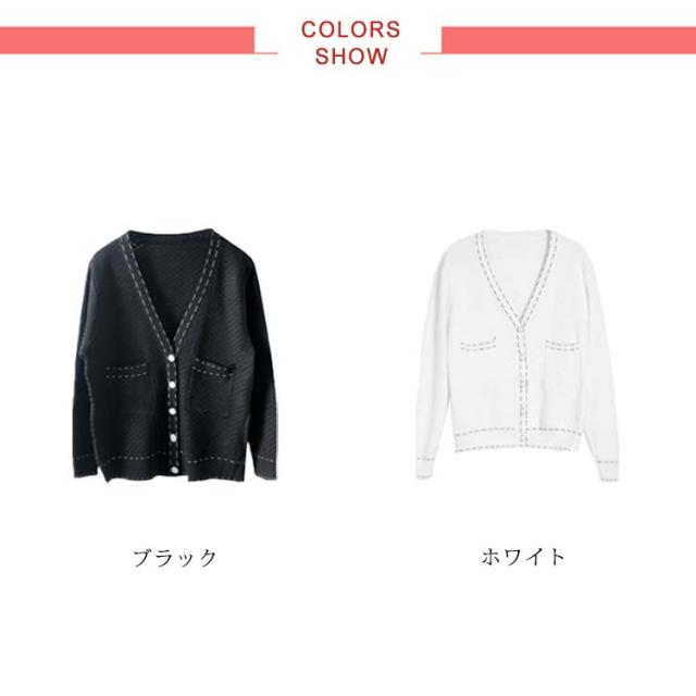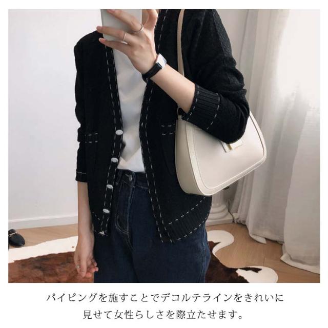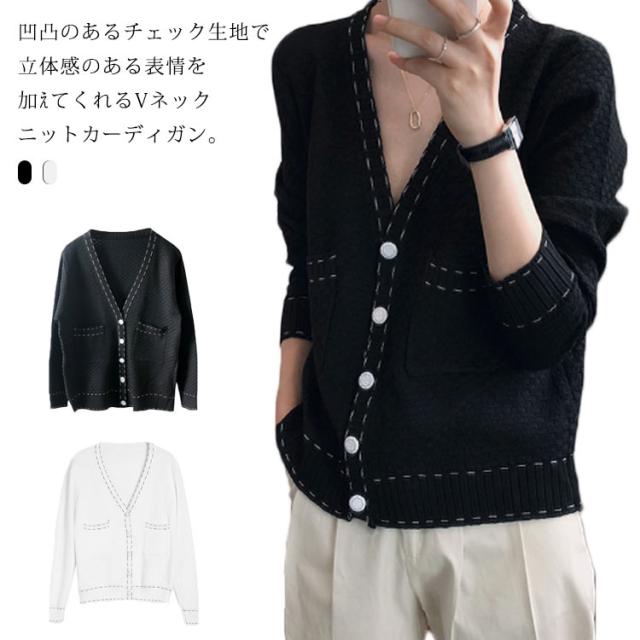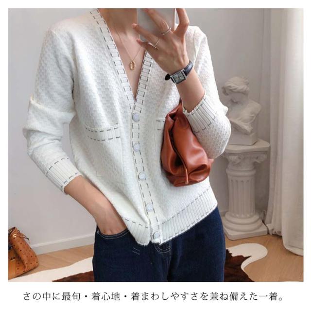 カーディガン レディース ニットカーデ トップス 羽織り vネック バイカラー 長袖 パイピング ステッチ 薄手 無地 ライン 冷房対策 きれいめ カジュアル おしゃれ 上品 エレガント 華奢魅せ オフィスカジュアル