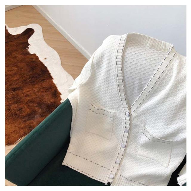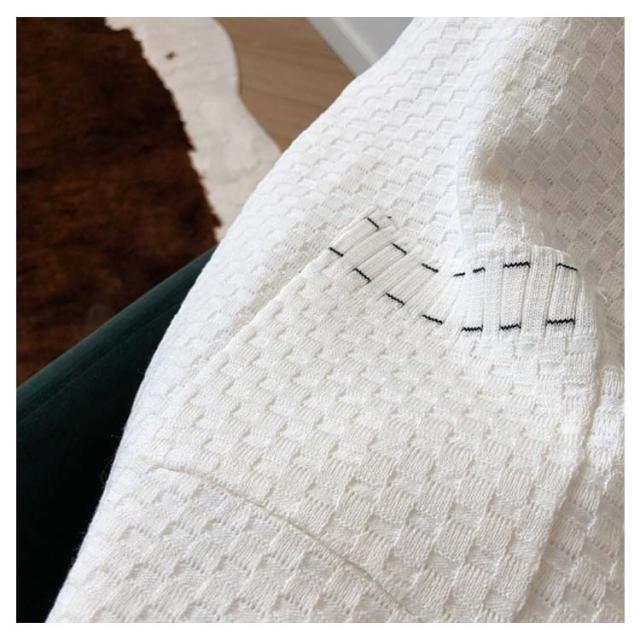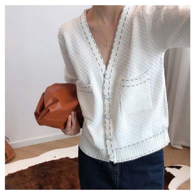 | 凹凸のあるチェック生地で立体感のある表情を加えてくれるVネックニットカーディガン。 胸元は広めに開いたVネックで首元をすっきりと見せてくれるので華奢見え効果も! パイピングを施すことでデコルテラインをきれいに見せて女性らしさを際立たせます。 程よいラフさがありながら、もたつかずスッキリとしたシルエット。 ゆったりとしたサイズ感と柔らかい素材感、着疲れしないリラックスできる着心地です。 さの中に最旬・着心地・着まわしやすさを兼ね備えた一着。 | |