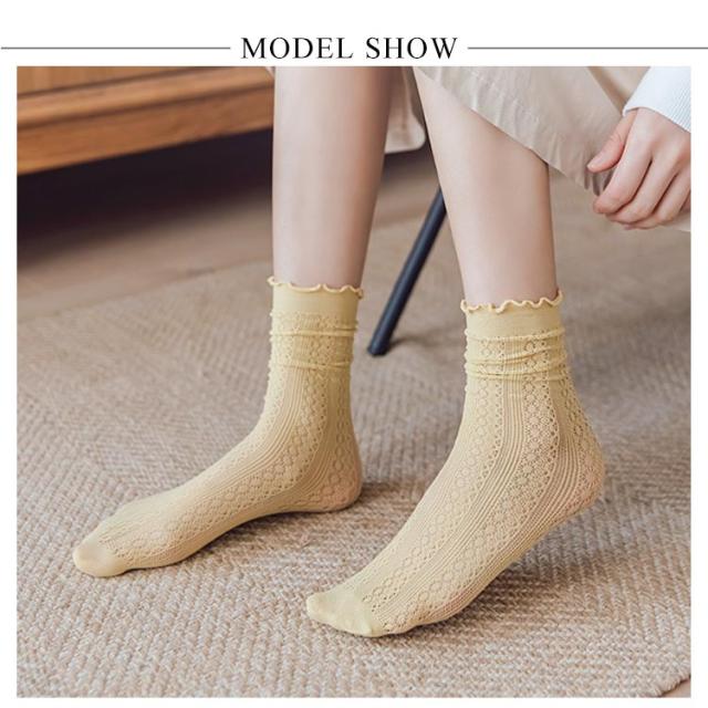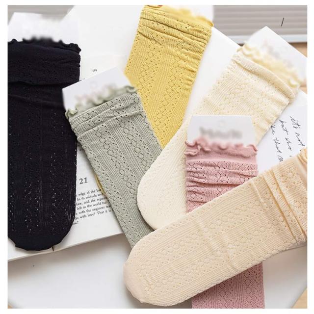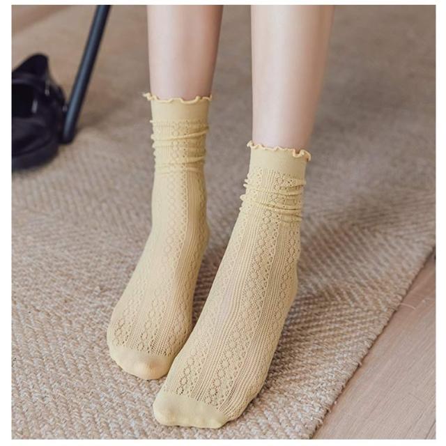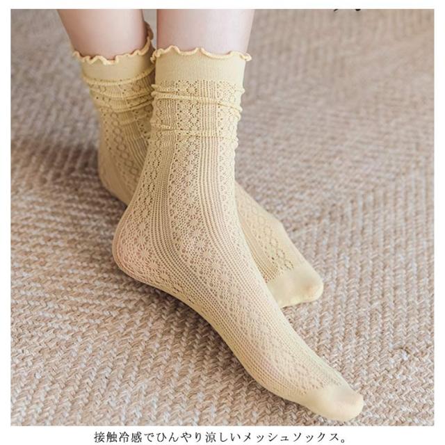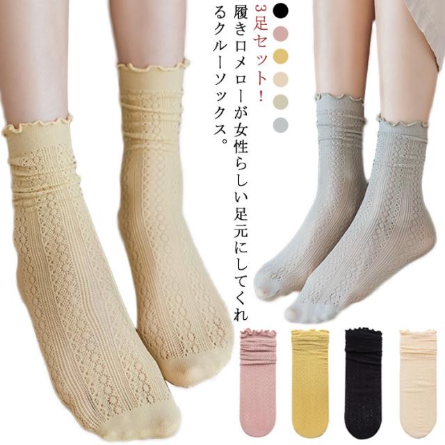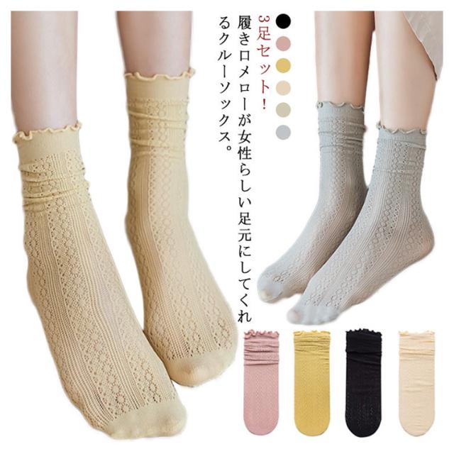 クルーソックス 靴下 レディース 3足セット ソックス 接触冷感 涼しい メッシュ 綿 通気性 薄手 メロウフリル クルー丈 ミドルソックス シンプル 無地 くしゅくしゅ かわいい 森ガール 春 夏 美脚 蒸れない 通勤 通学 オシャレ 送料無料